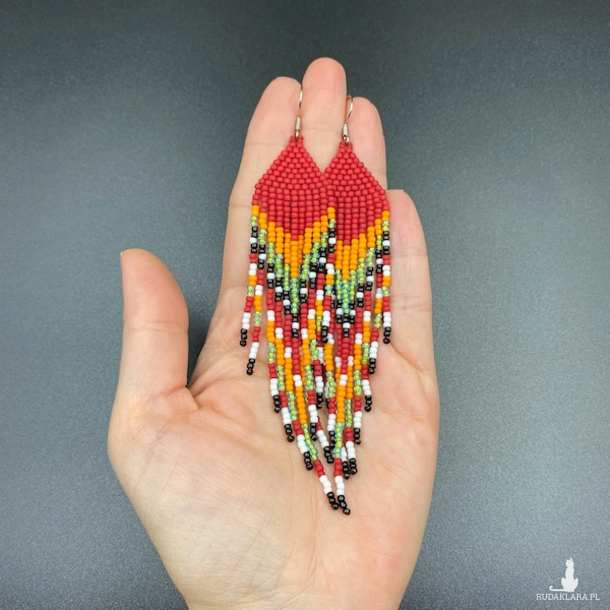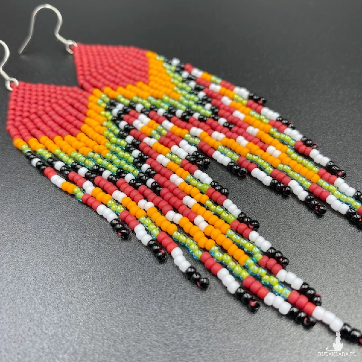 Etniczne kolczyki zostały w 100% utkane ręcznie z koralików TOHO 11. Każdą pracę wykonuję bardzo starannie.