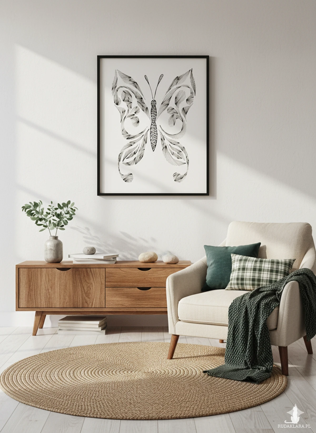 Motyl sam w sobie jest archetypem przemiany. W tej liniowej formie, gdzie każdy fragment skrzydeł wydaje się być w ciągłym ruchu i przejściu, emocjonalnie wzmacnia to poczucie nieustannej ewolucji i procesu stawania się. Jest to przypomnienie, że życie to ciągła zmiana, która może być piękna i delikatna.