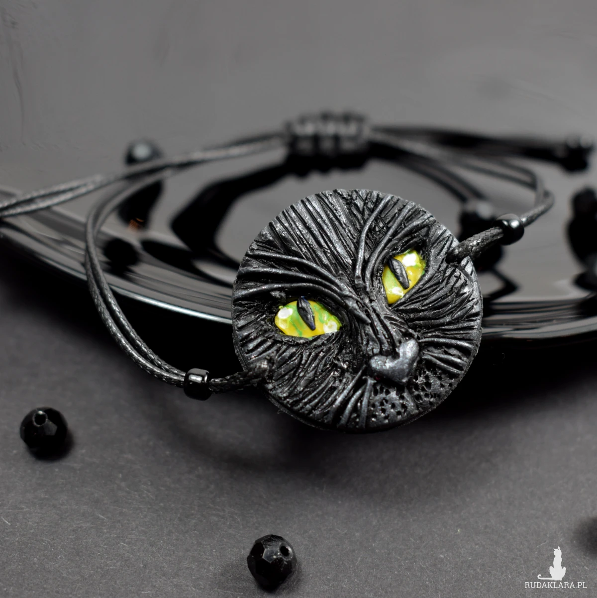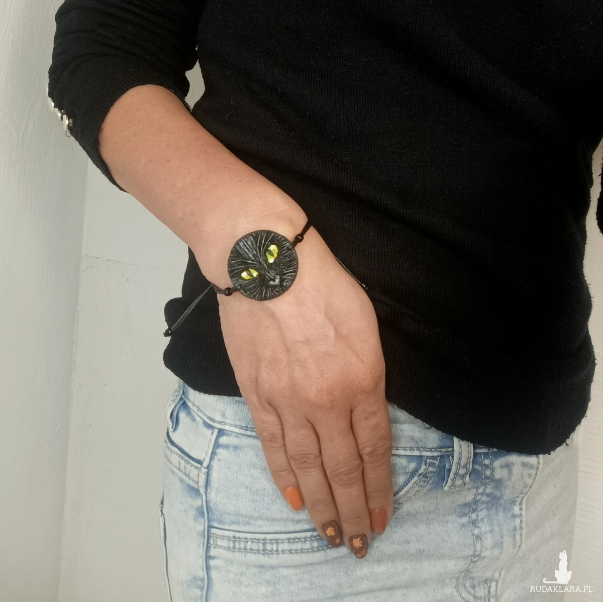 Bransoletka "czarny kot" - biżuteria z charakterem, regulowana.