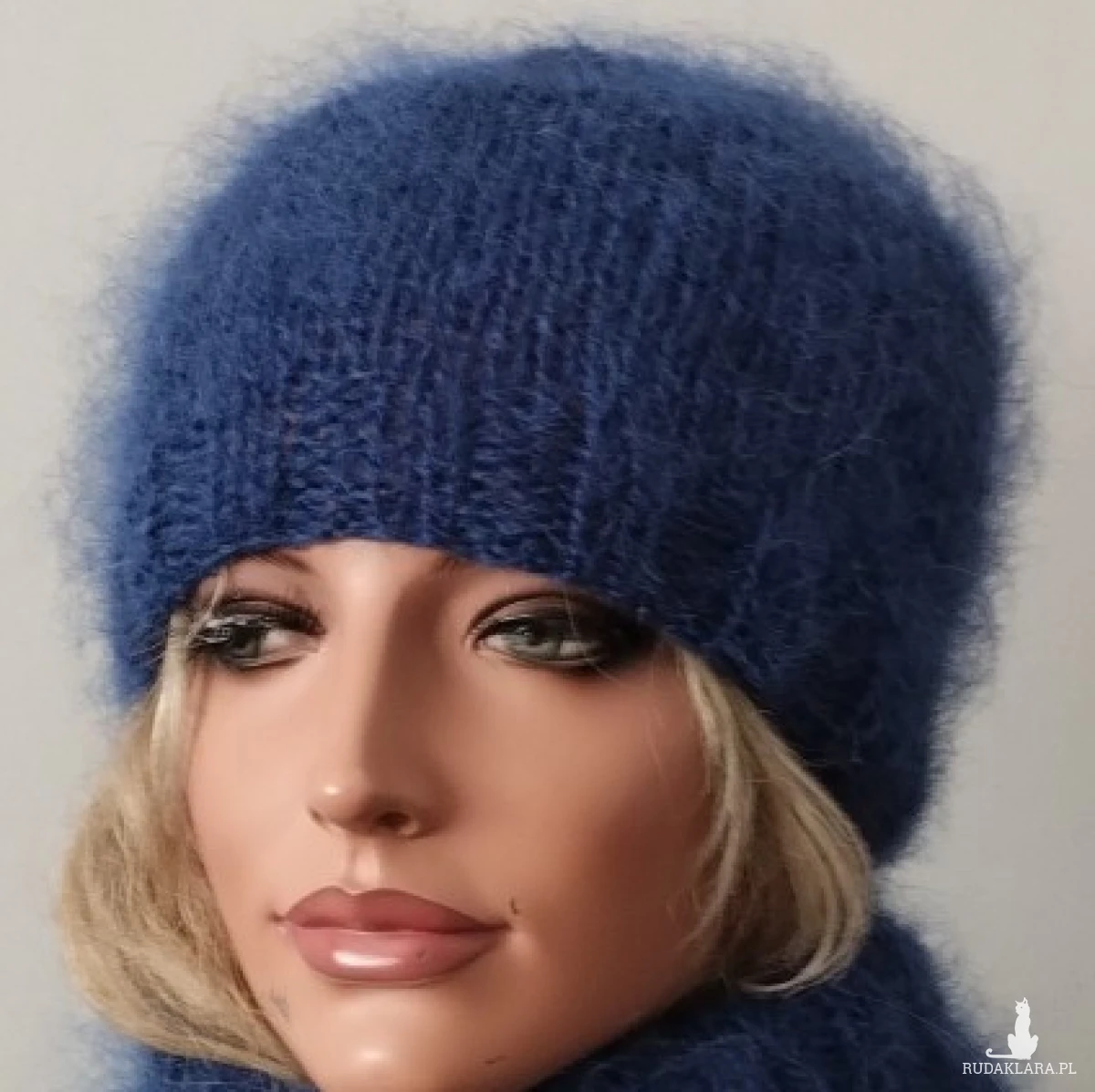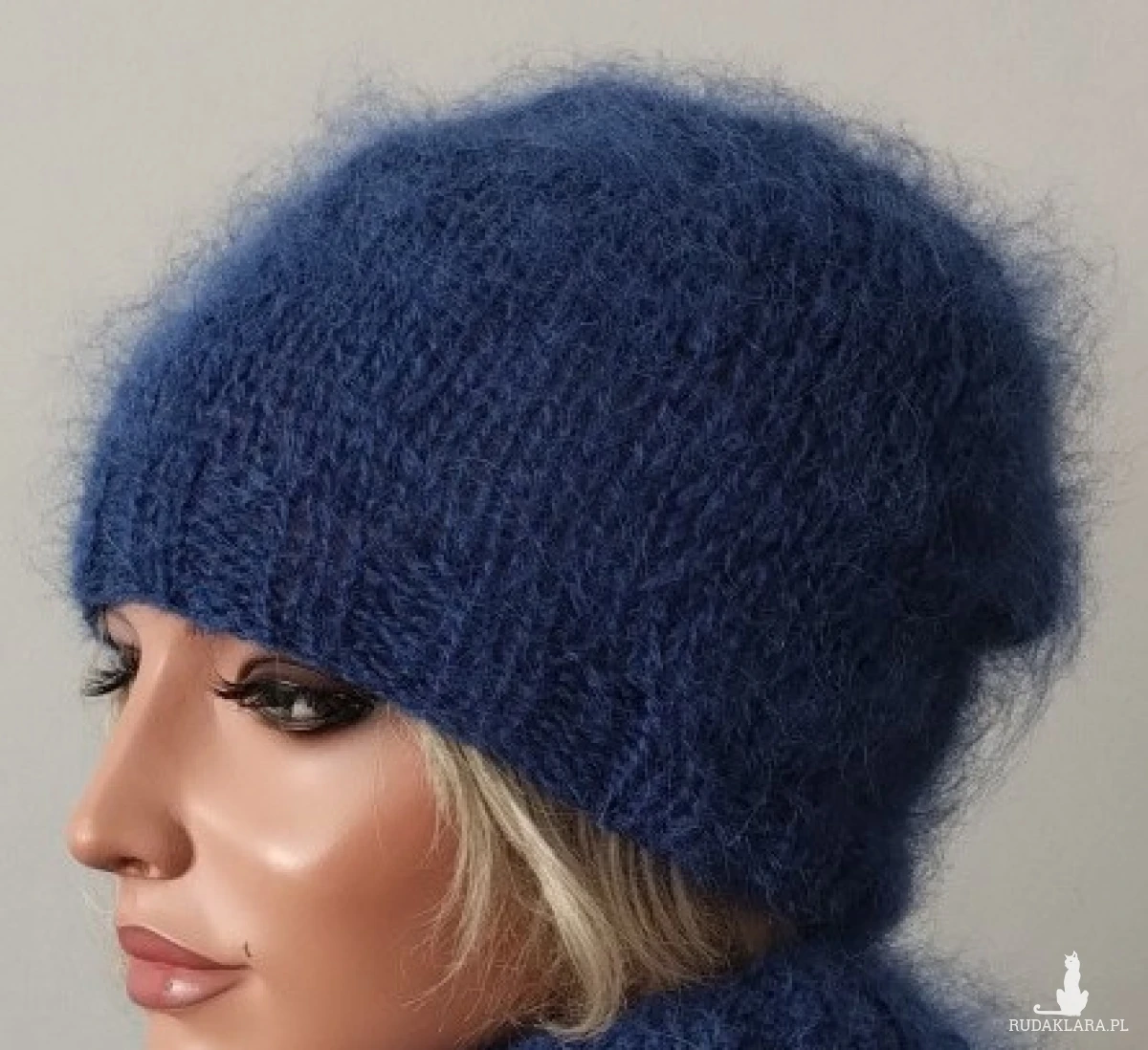 Moherowa czapka zrobiona ręcznie na drutach z mieszanki 26% moheru, 24% wełny, 50% akrylu w kolorze niebieskim . Włóczka puszysta, miękka, nie gryzie, ma śliczny włos. Rozmiar uniwersalny. Producent włóczki zaleca pranie ręczne w temperaturze 30 stopni, suszyć na leżąco.