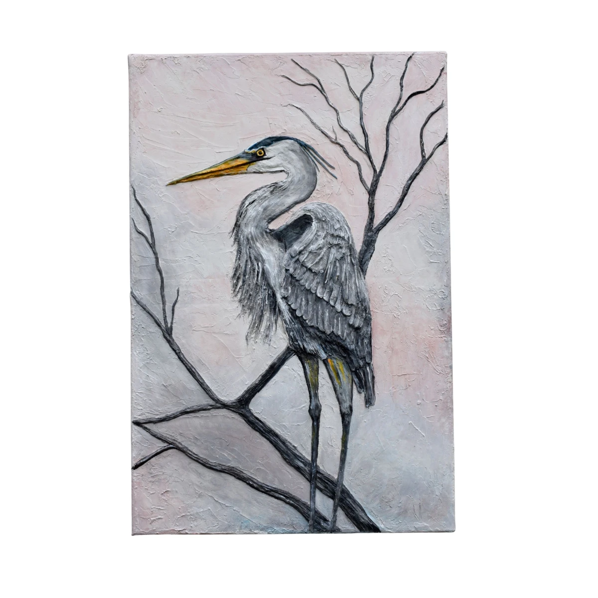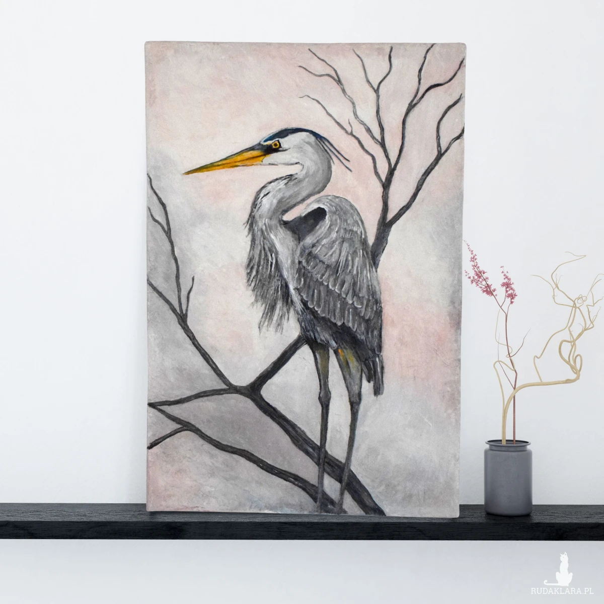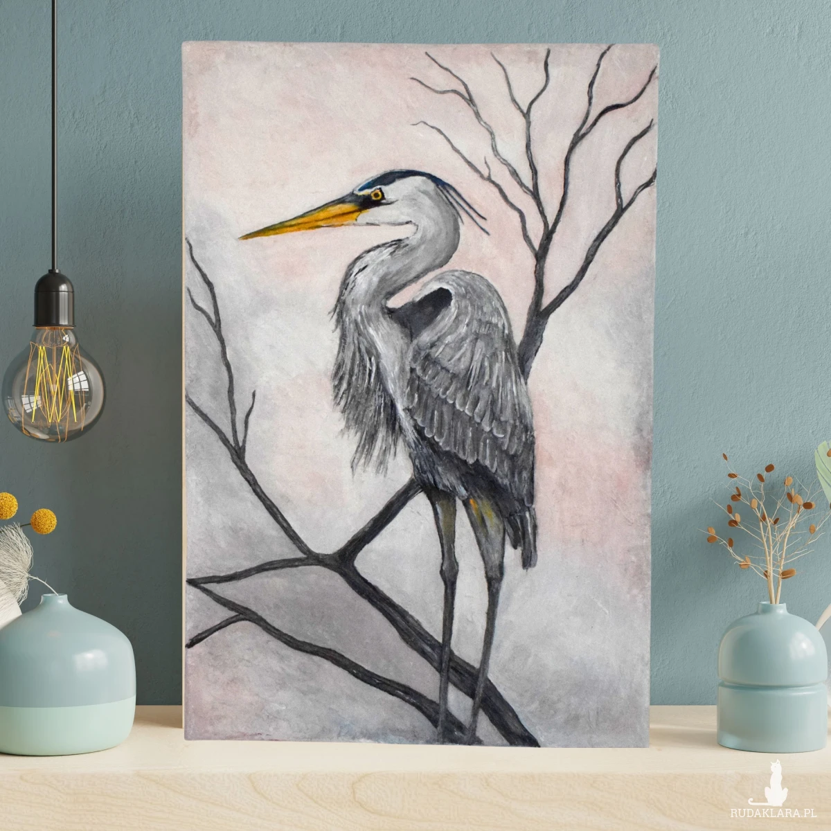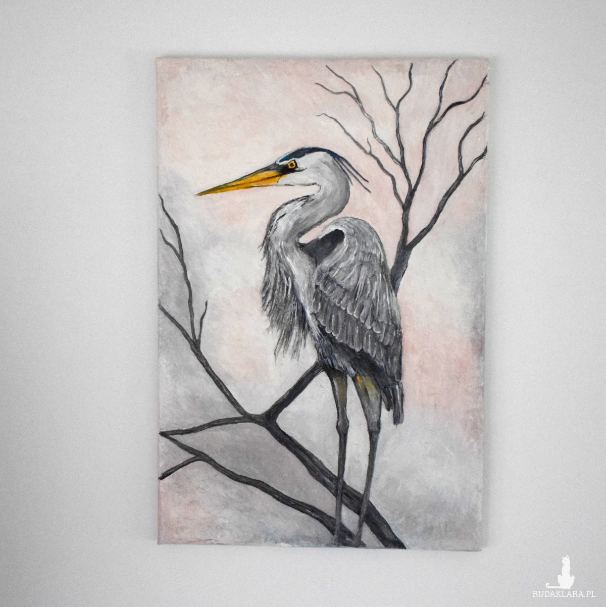 która łączy malarstwo i rzeźbę. Ptak oraz gałęzie zostały wyrzeźbione