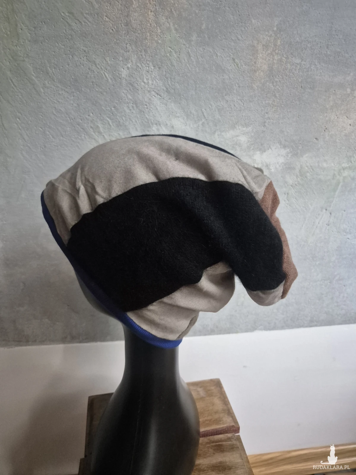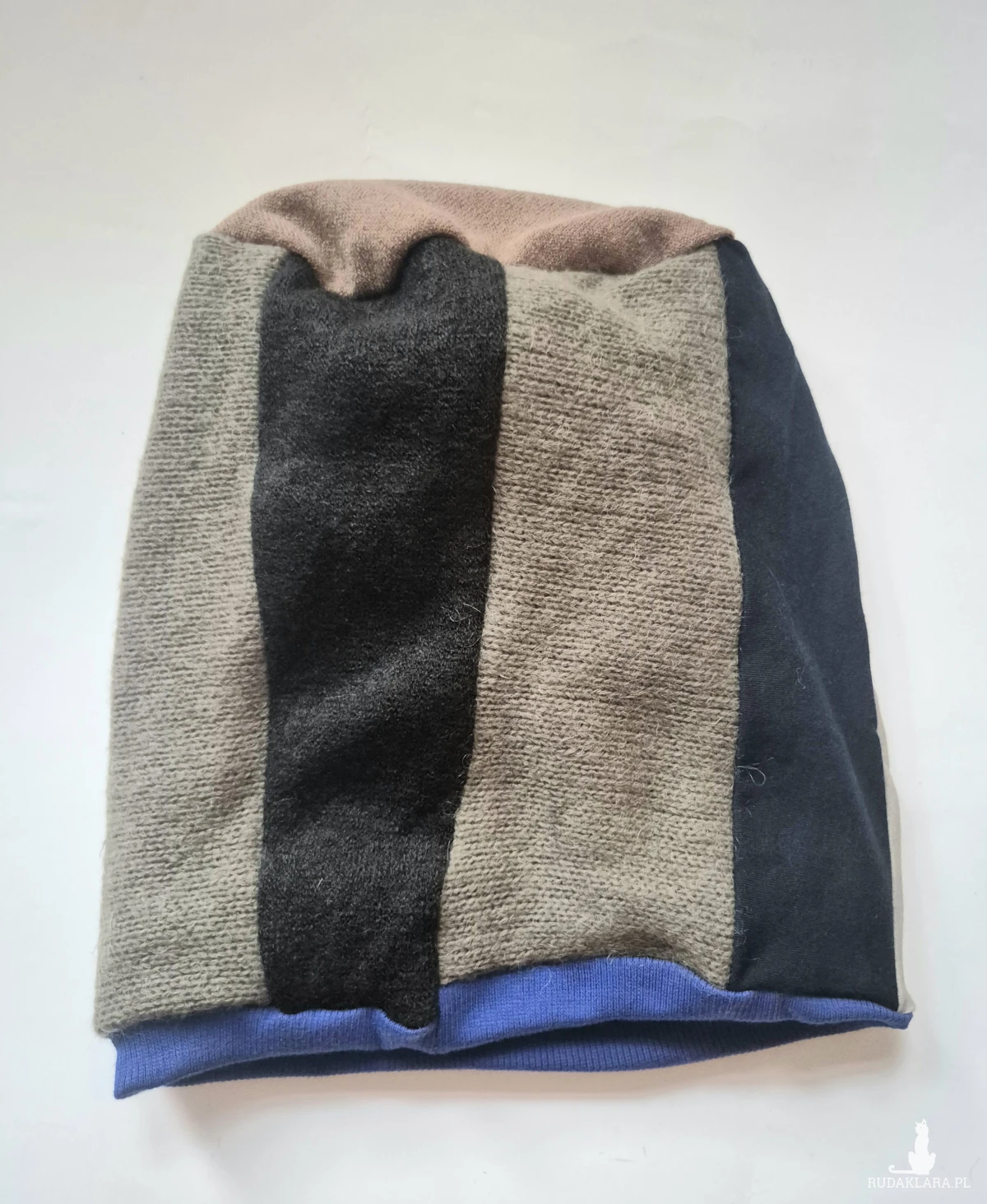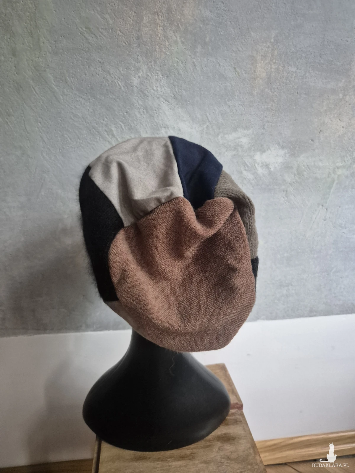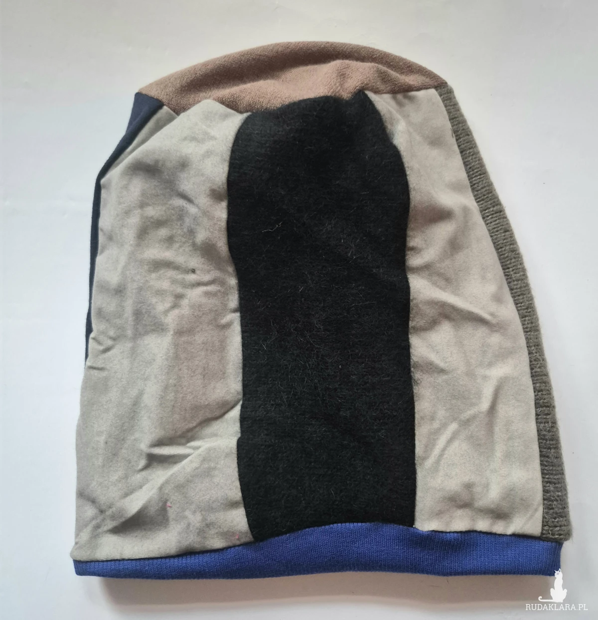Czapka patchworkowa ciepła uniwersalna damska   na podszewce,pojedynczy egzemplarz,polecam box f1