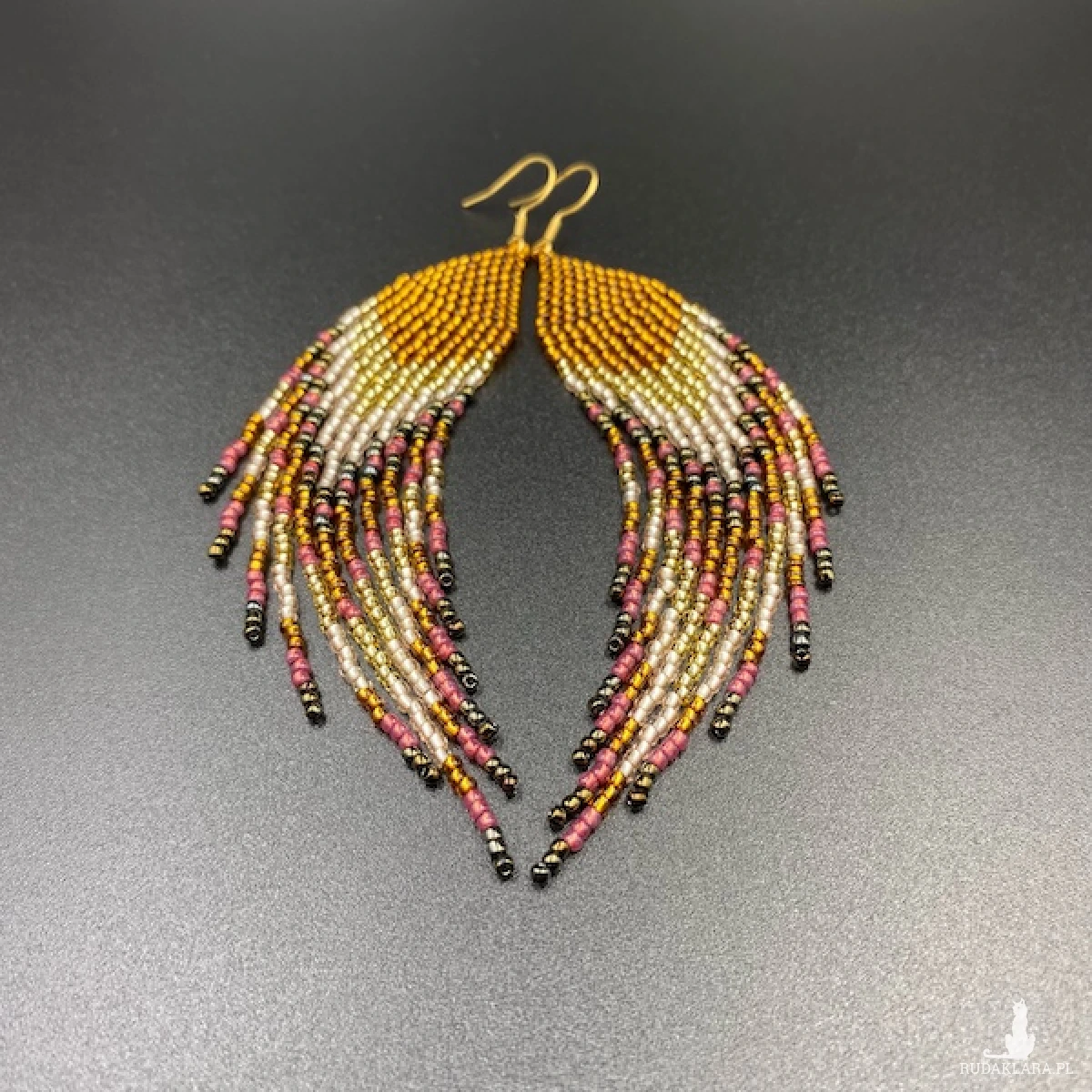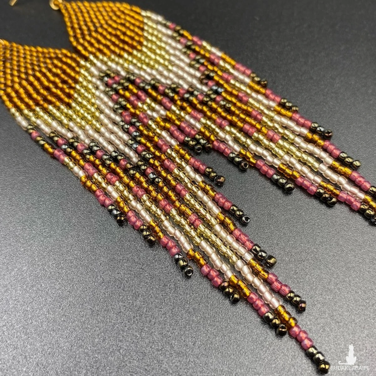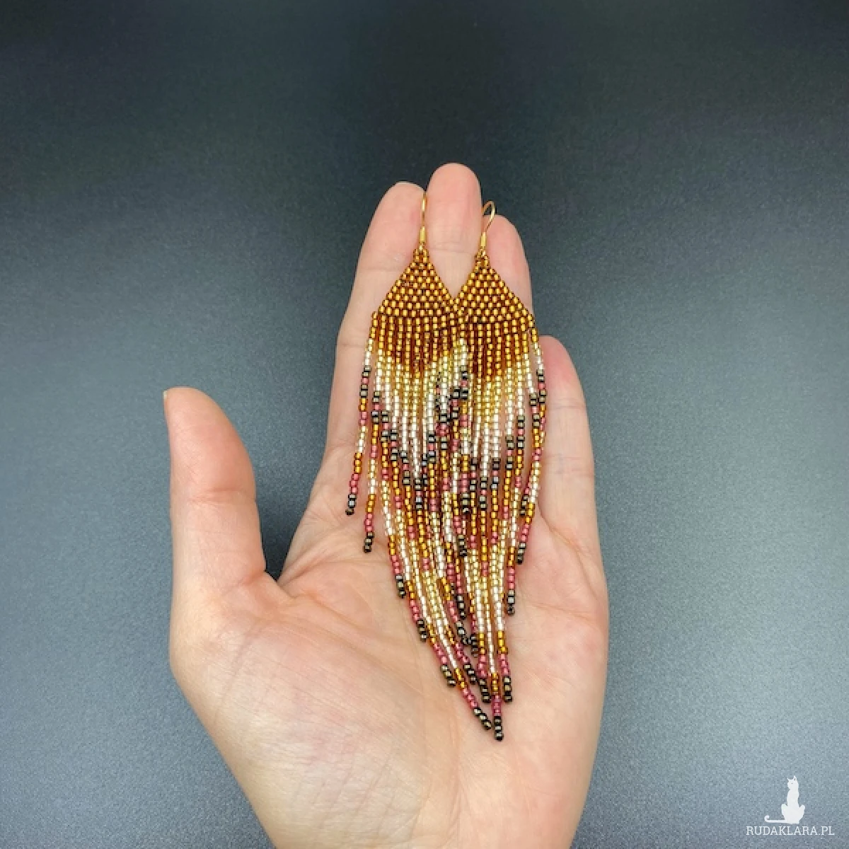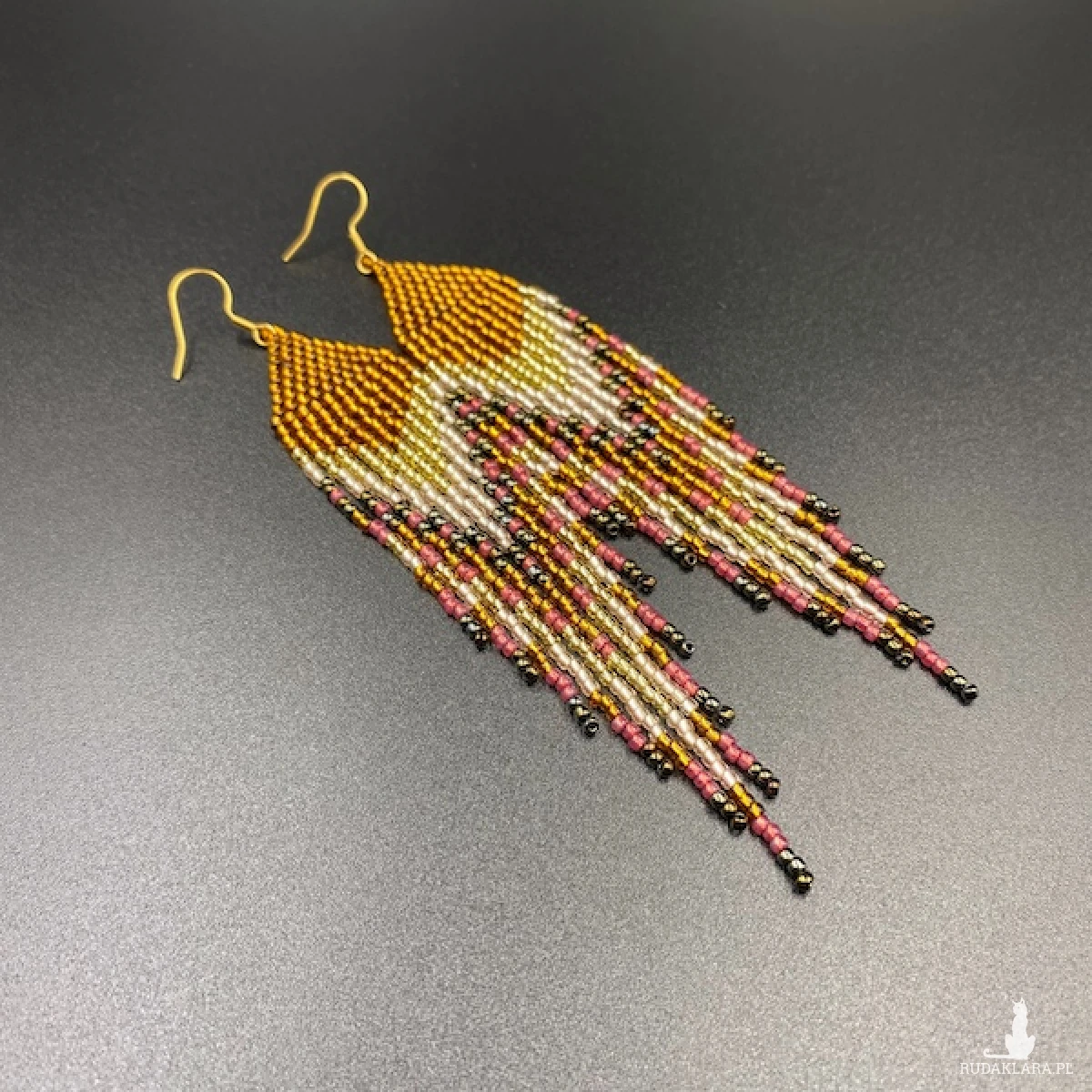 Etniczne kolczyki zostały w 100% utkane ręcznie z koralików TOHO 11. Każdą pracę wykonuję bardzo starannie.