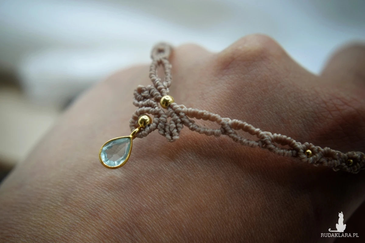 Sznurki boczne(regulacja) ok. 35x2 cm w tym zapięcie regulowane- makramowe
