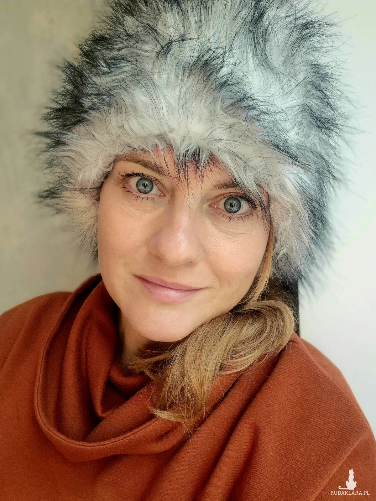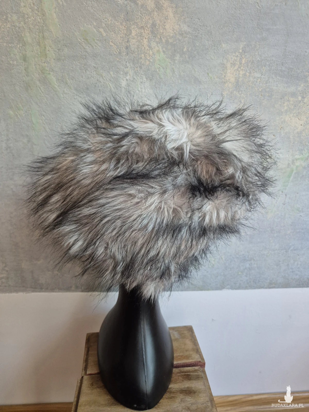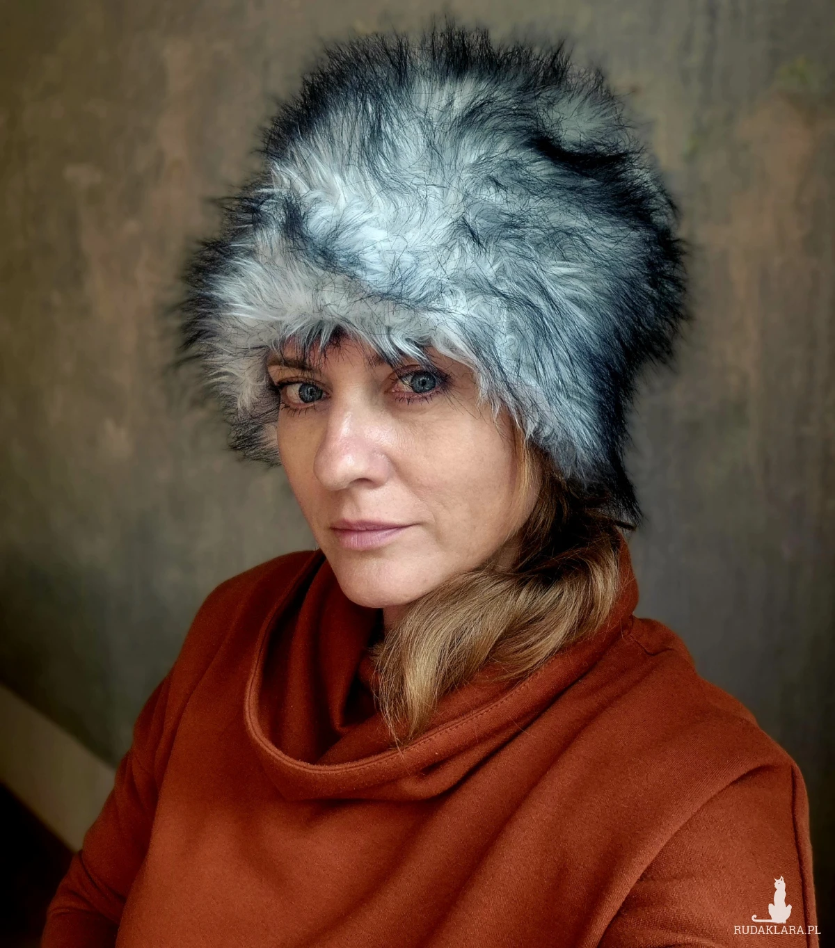 Ciepla  futrzana czapka w szalona bardzo ciepła czapka nie dla szarych myszek dla artystek wolnych duchów, miła na podszewce, czapka dla artystki, rozmiar 57-58cm  , nie zginiesz w tłumie  , box waliz