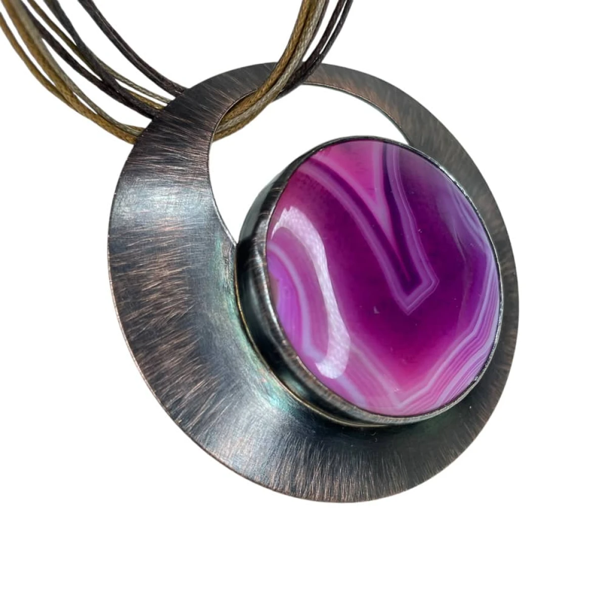 “Agatowe krajobrazy” to kolekcja naszyjników z niepowtarzalnymi agatami osadzonymi w miedzi.