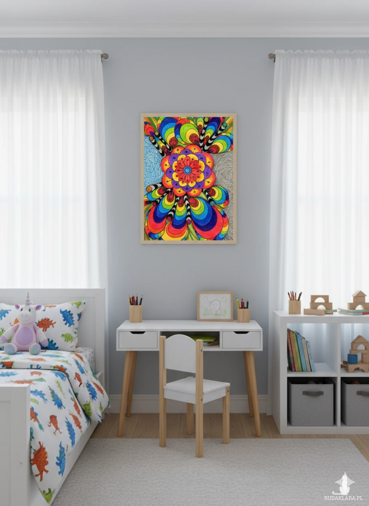 „Tęcza” to rysunek pełen radości, energii i życia.