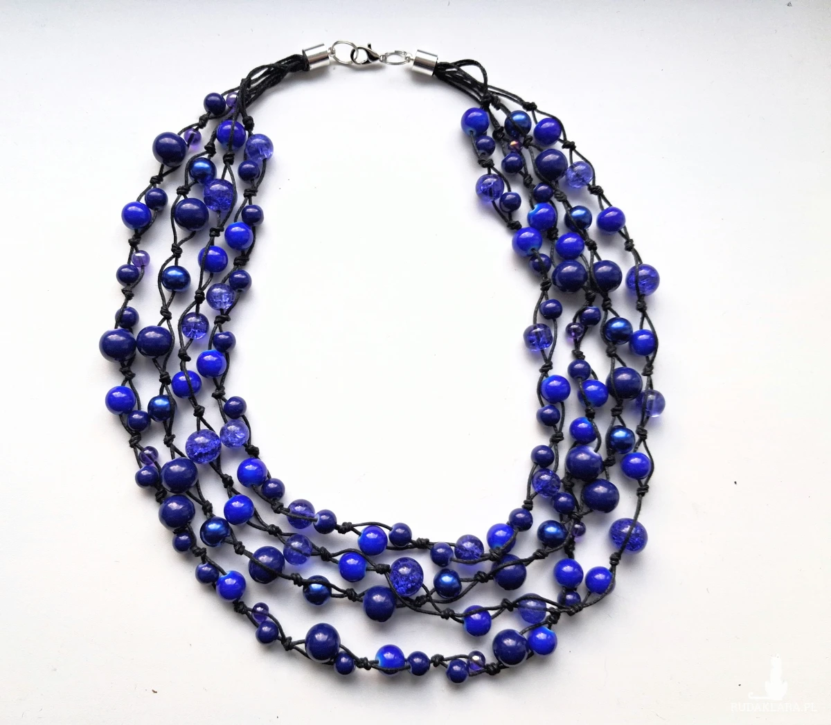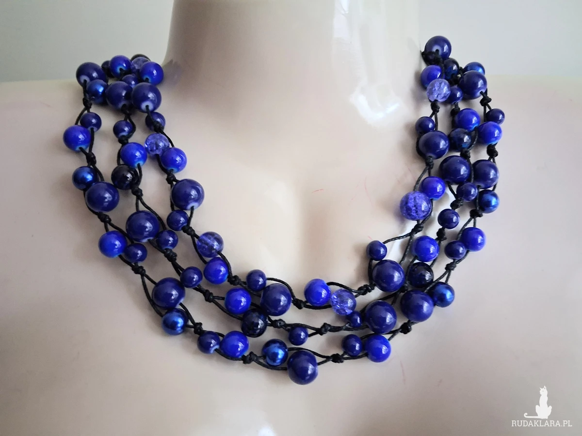 Niezwykły naszyjnik wykonany ręcznie w jednym egzemplarzu z pereł, koralików szklanych i 6 sznurków z bawełny woskowanej.