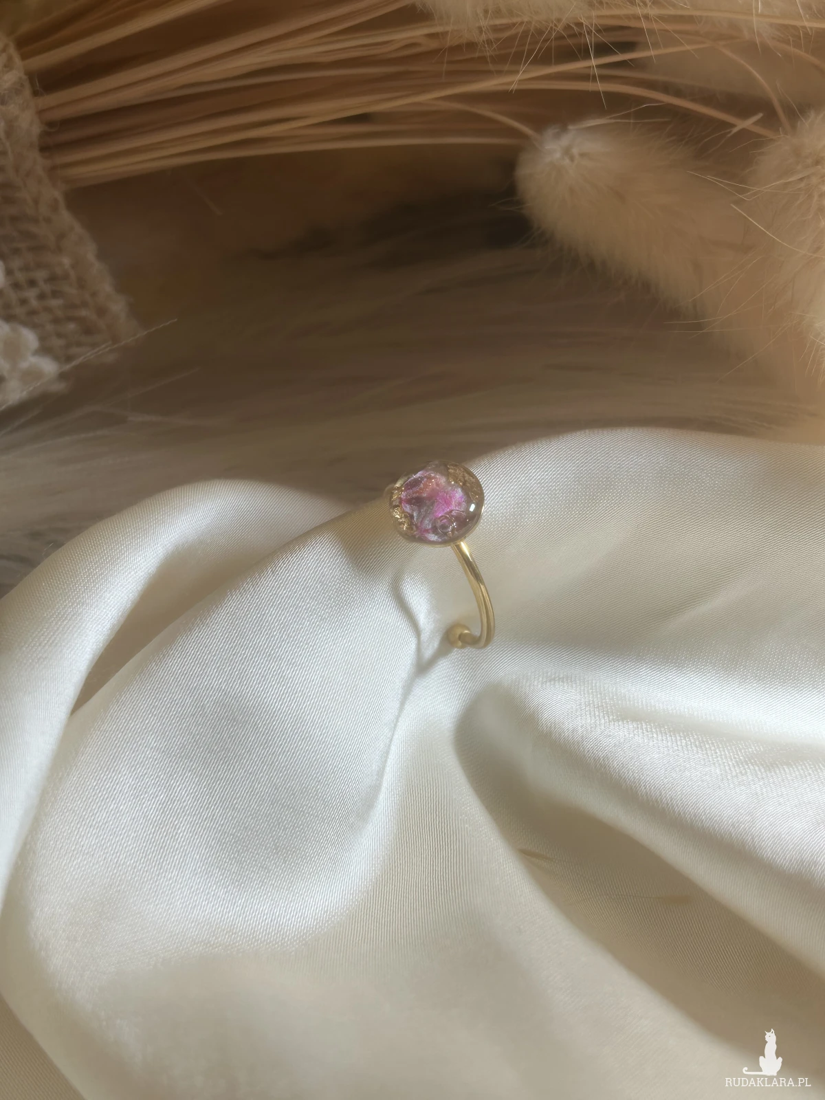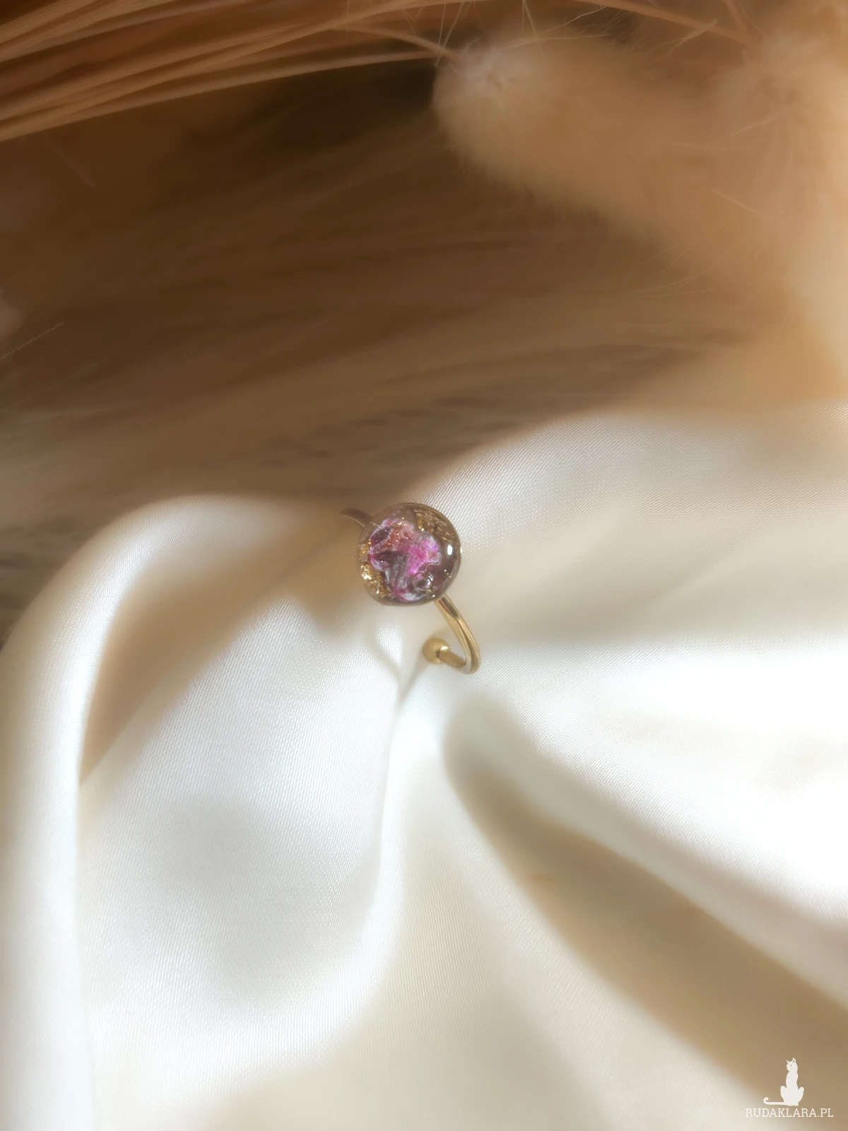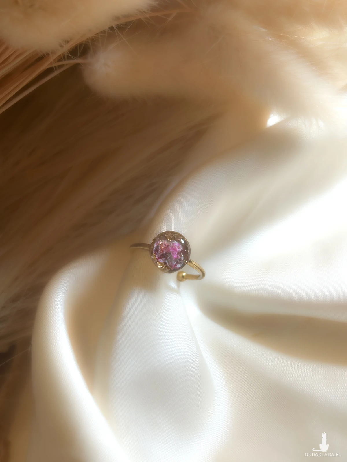 Regulowany pierścionek z prawdziwymi kwiatami.