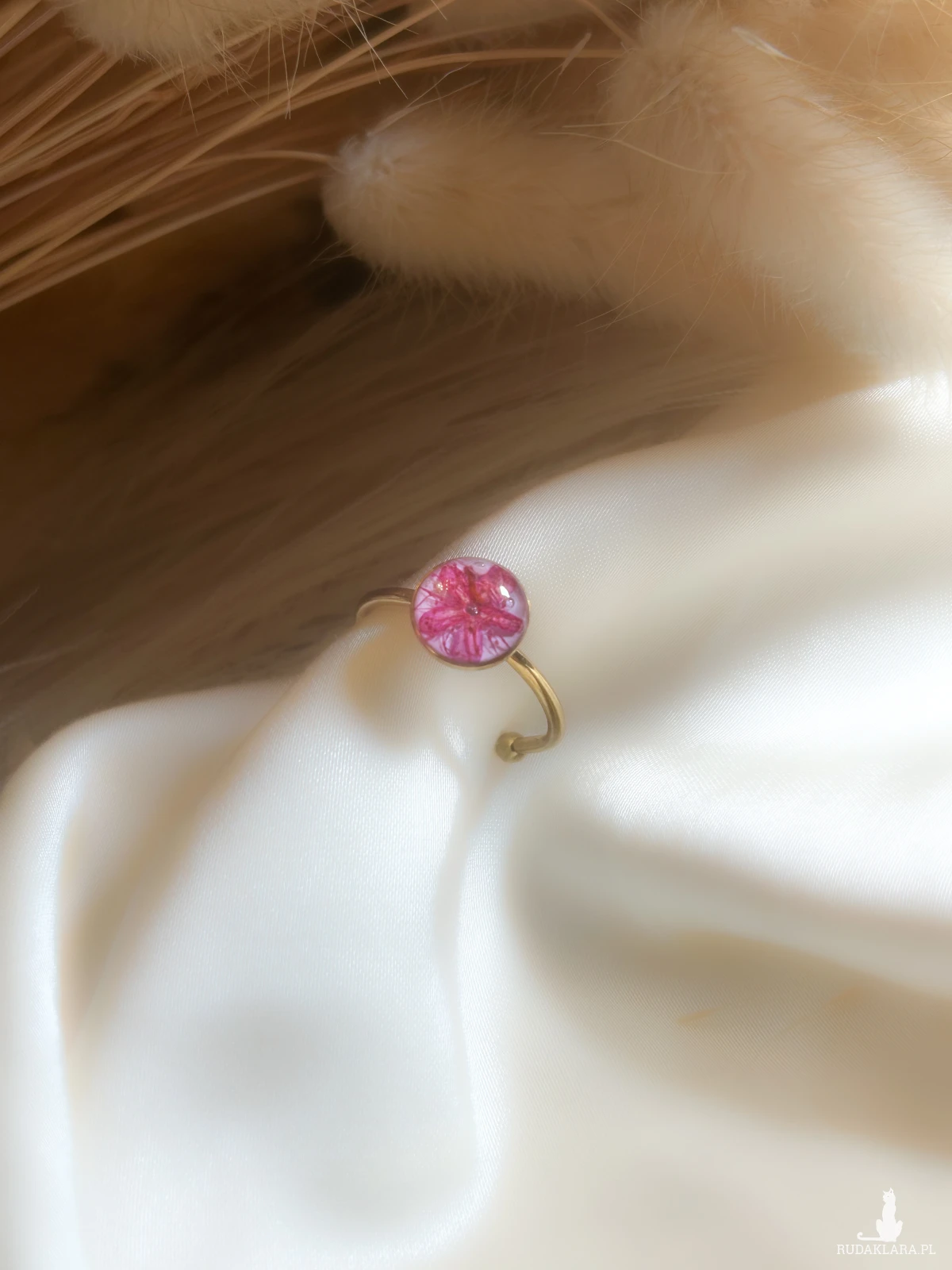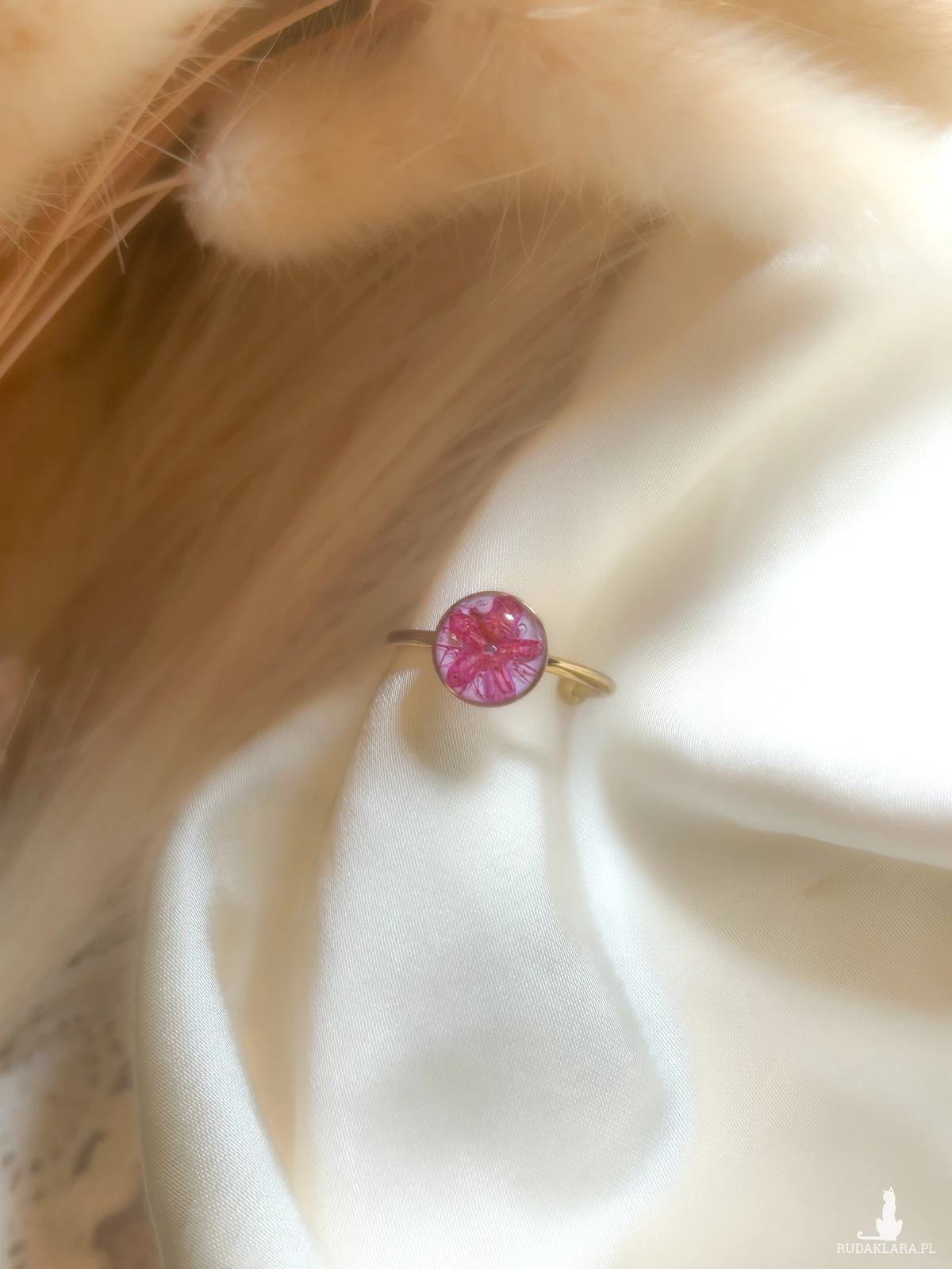 Regulowany pierścionek z prawdziwymi kwiatami.