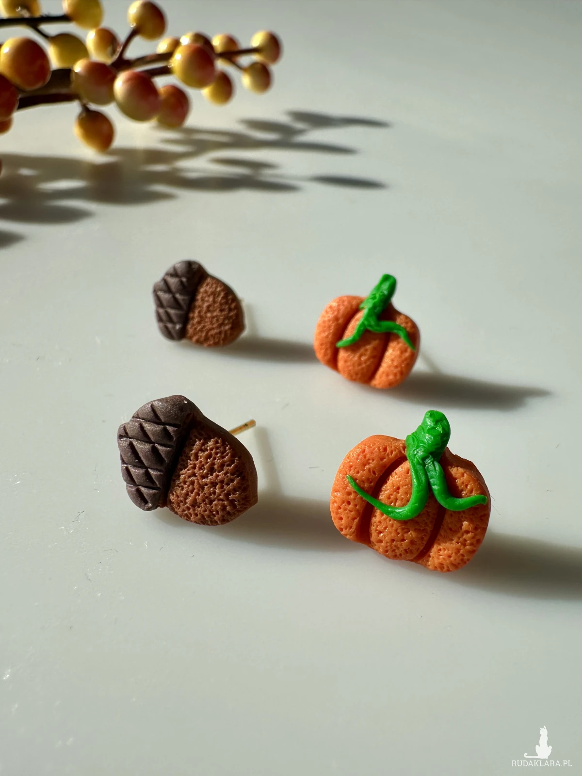 Komplet sztyftów jesiennych to zdecydowanie propozycja dla wszystkich 'Jesieniar'. Zestawy można komponować z małych dyń, mniejszych i większych żołędzi oraz liści dębu.