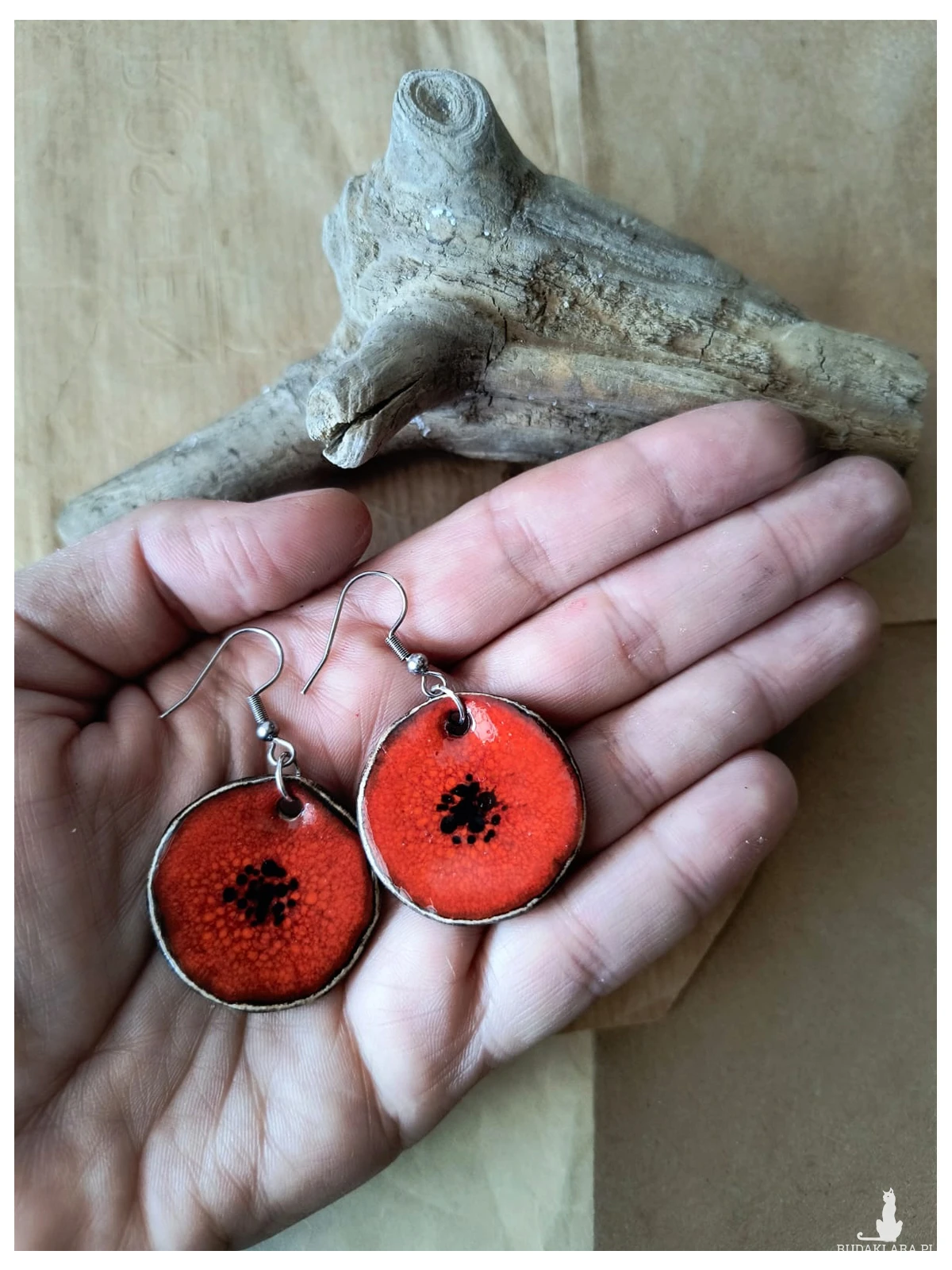 Ręcznie robione kolczyki ceramiczne wykonane z gliny szamotowej. Dla Pań poszukujących unikatowej biżuterii lub jako upominek dla bliskiej nam osoby. Jeśli po potwierdzeniu u artysty okaże się, że produkt jest aktualnie niedostępny, to zostanie wykonana podobna praca na zamówienie w terminie do 2 tygodni.