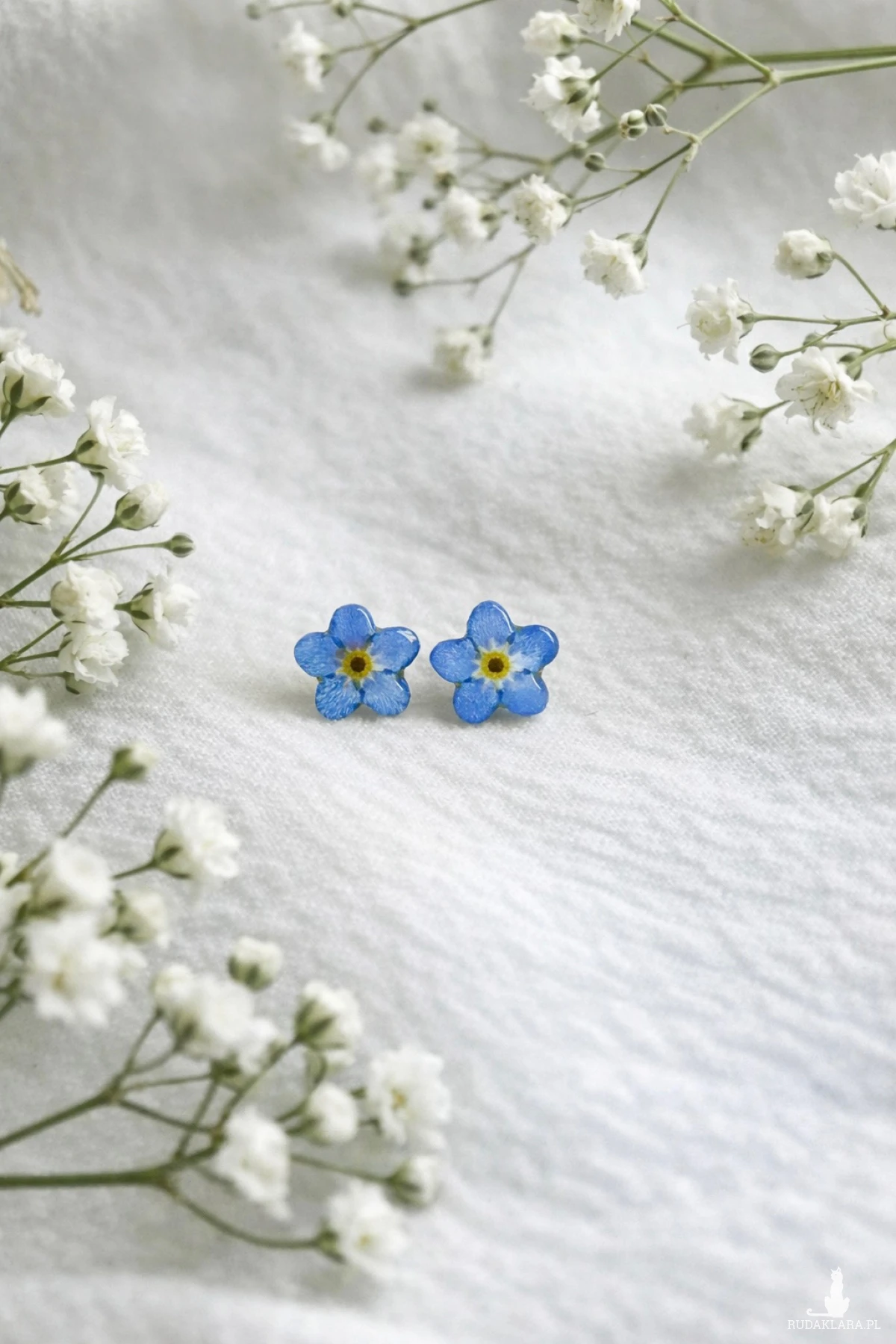 Kolczyki wkrętki z prawdziwymi niezapominajkami