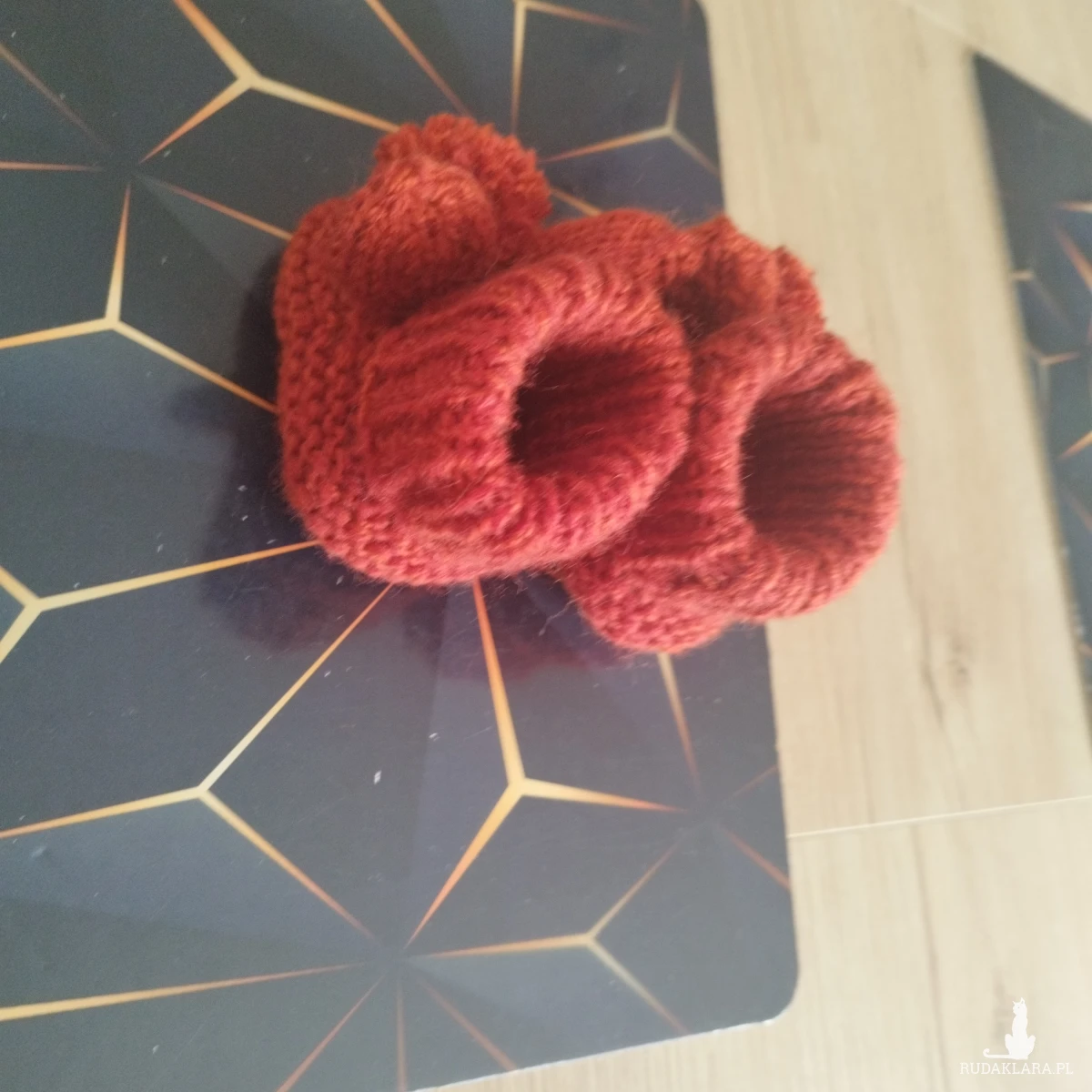 Buciki niemowlęce zrobione na drutach. Kolor kasztanowy. Rozmiar 0-3mies