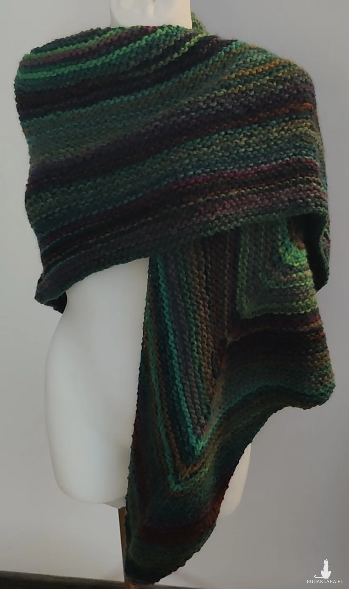 Duża chusta asymetrycznie zrobiona strzałka otuli, ogrzeje w zimowe dni.