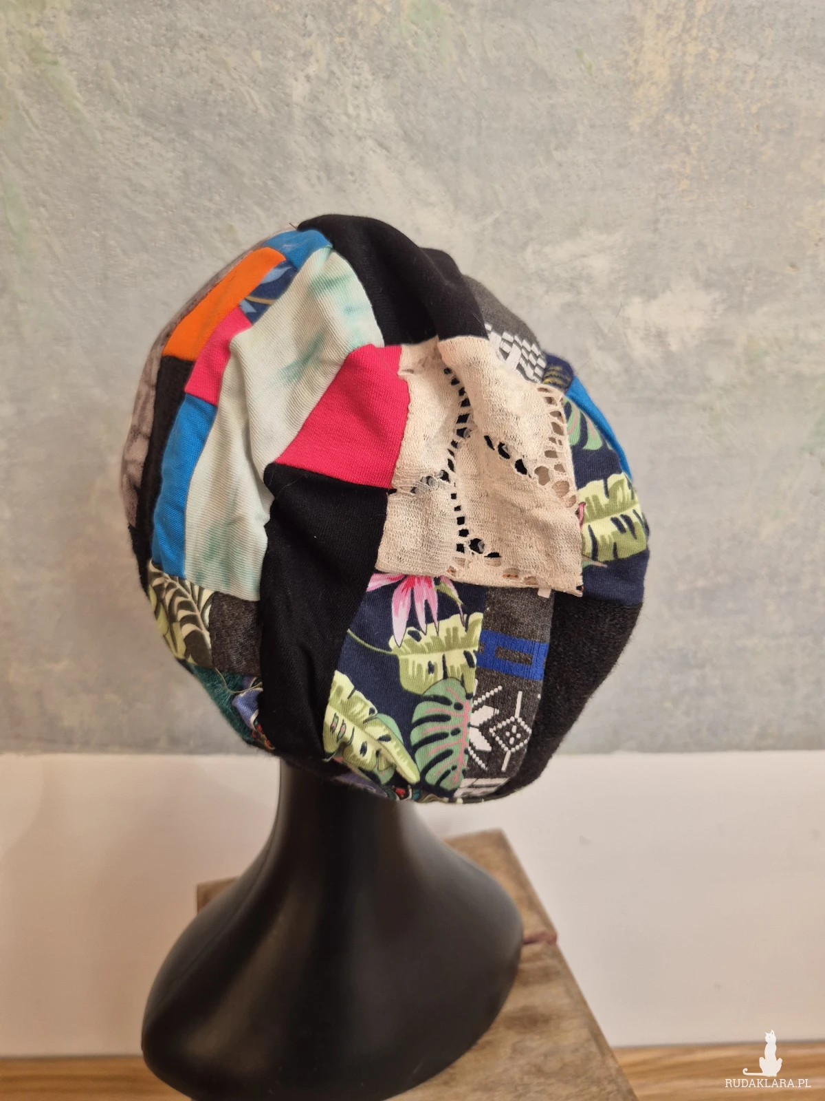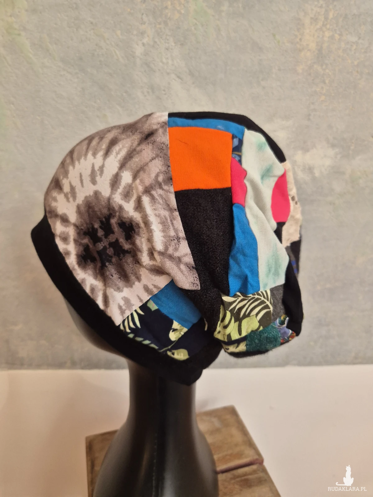Czapka patchworkowa na podszewce rozmiar uniwersalny rękodzieło dobra na codzienne noszenie polecam box a1