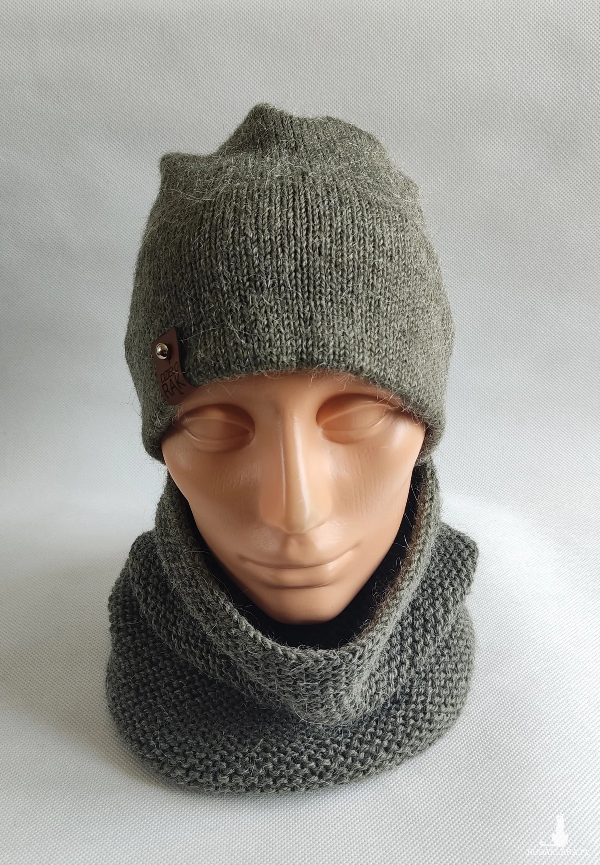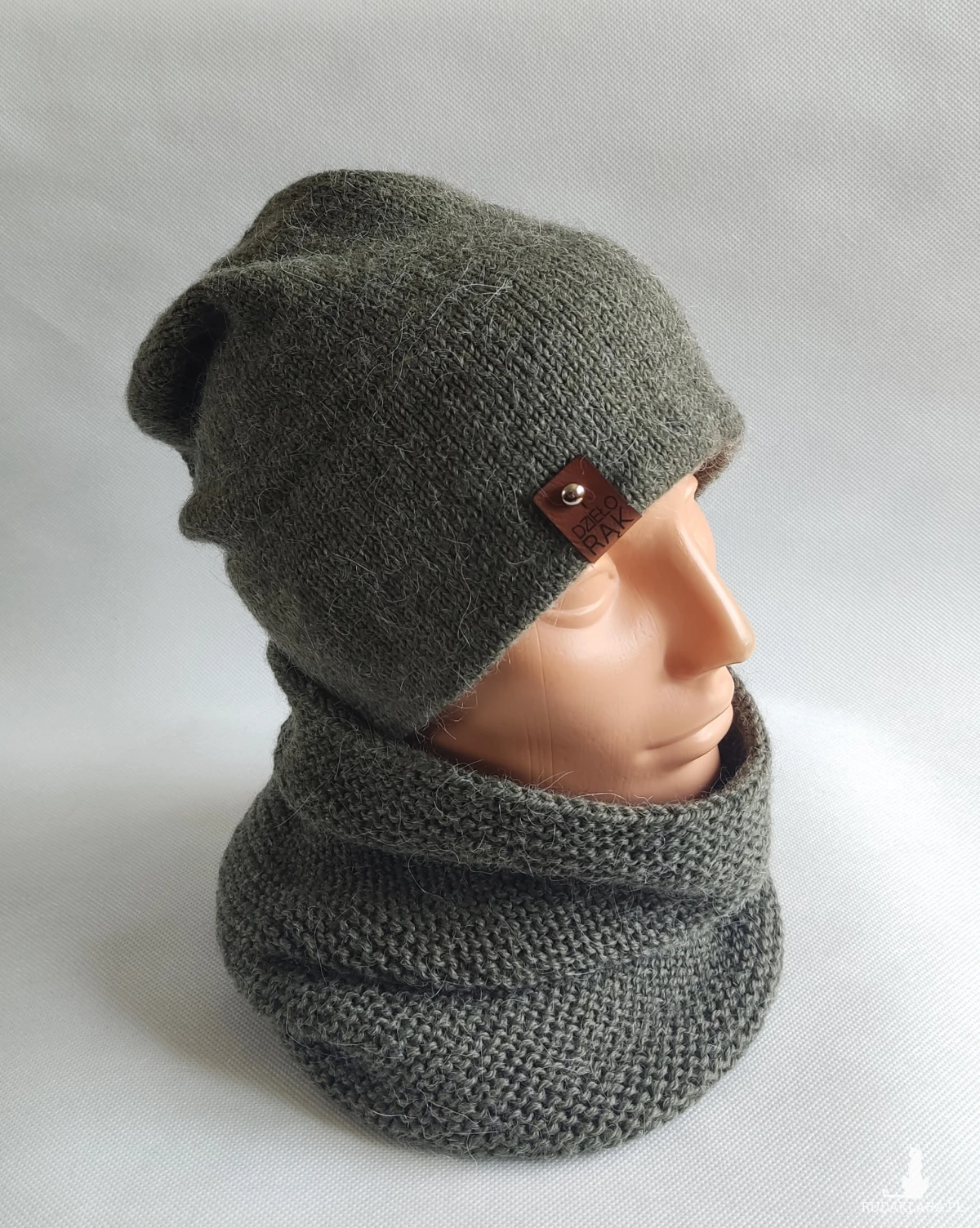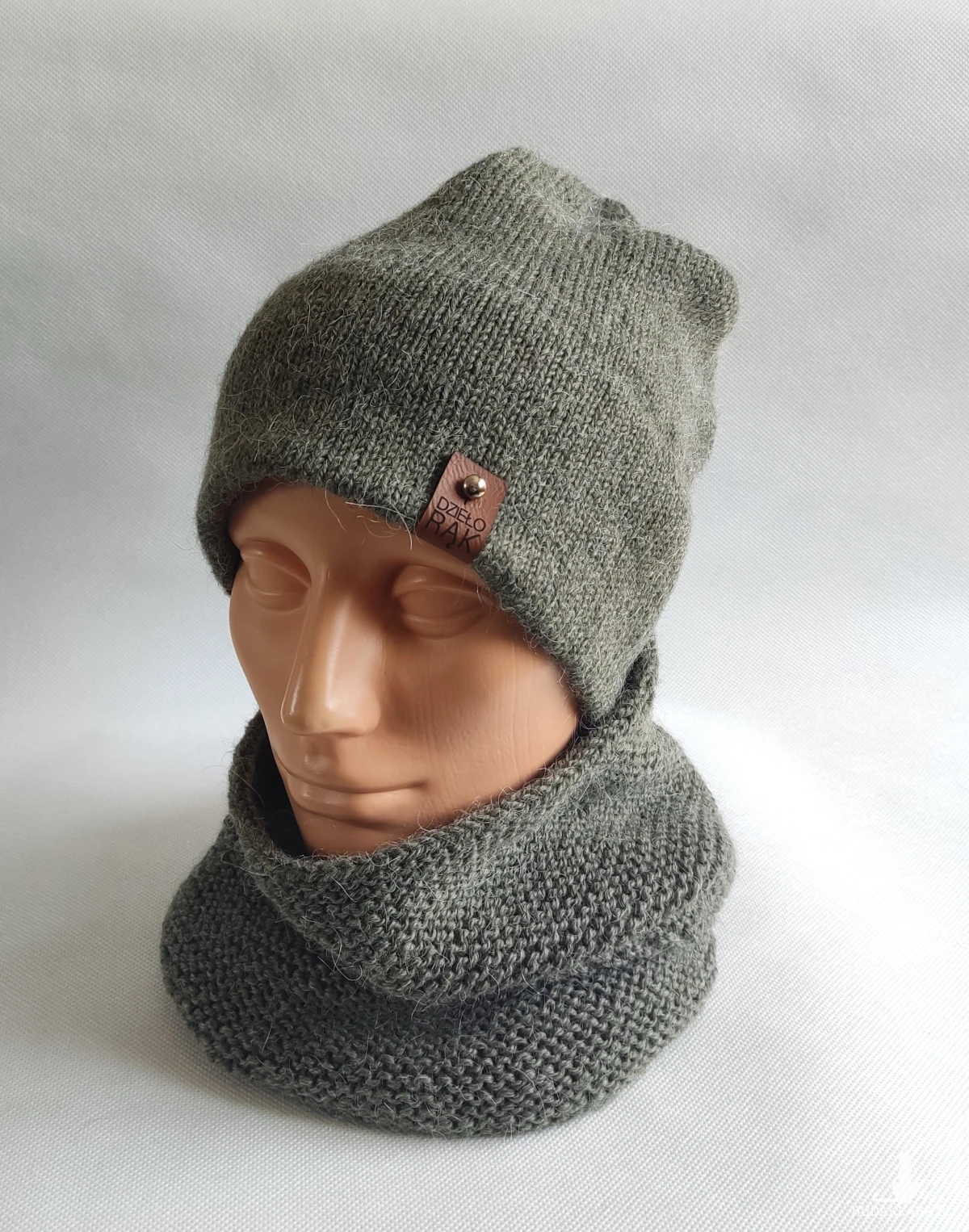 Komplet: czapka + komin, ręcznie robiony na drutach.
