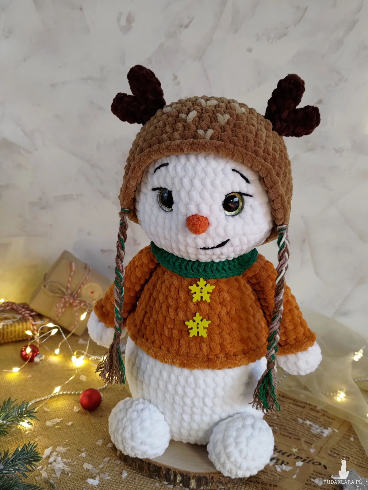 Świąteczny bałwanek pluszowy w czapeczkę renifera to jest bardzo niesamowita maskotka czyli dekoracja na Święta Bożego Narodzenia oraz Nowy rok!