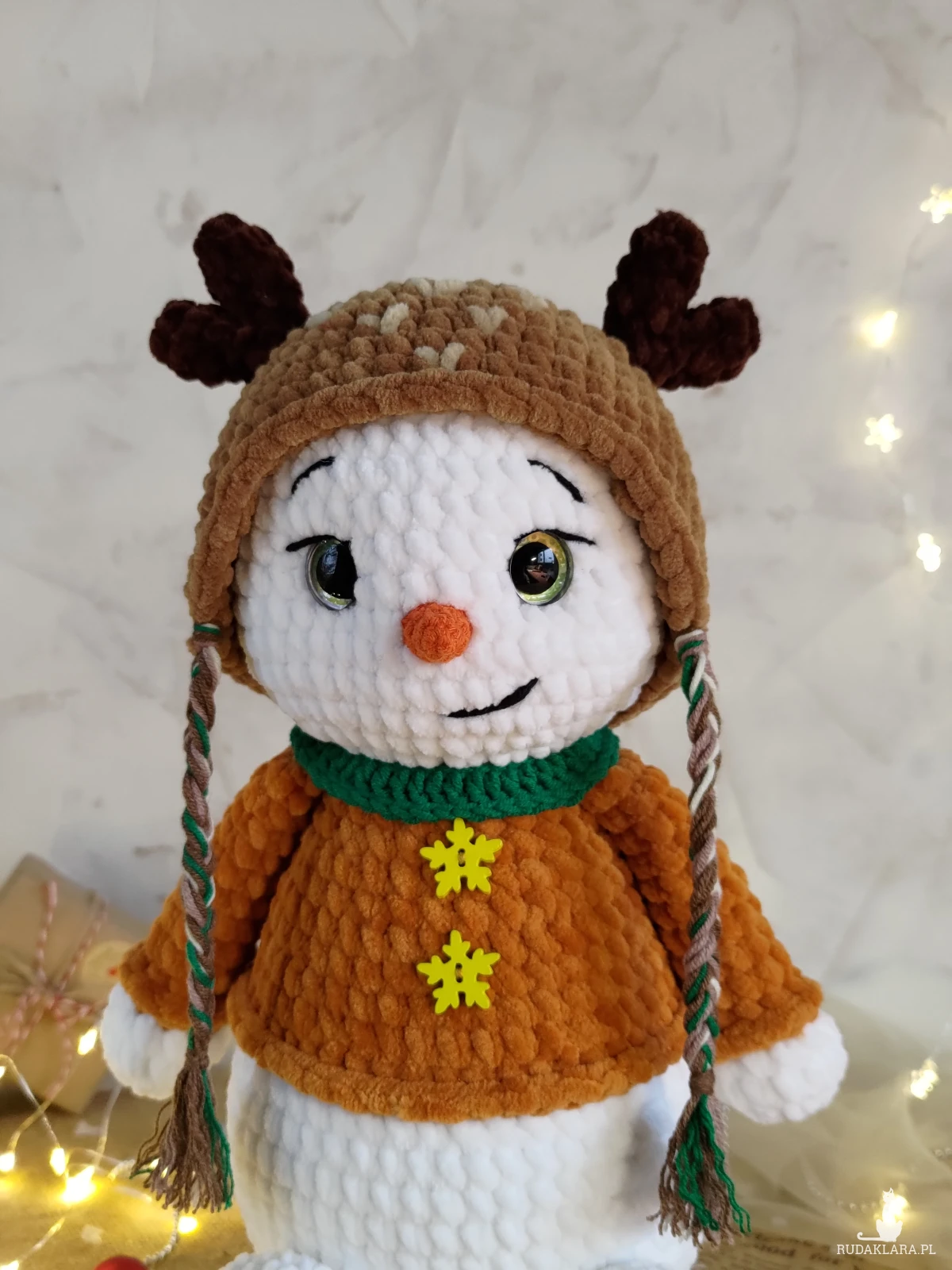 • Bałwanek wykonany z miękkiej pluszowej włóczki i jest bardzo przyjemny i miękki w dotyku.