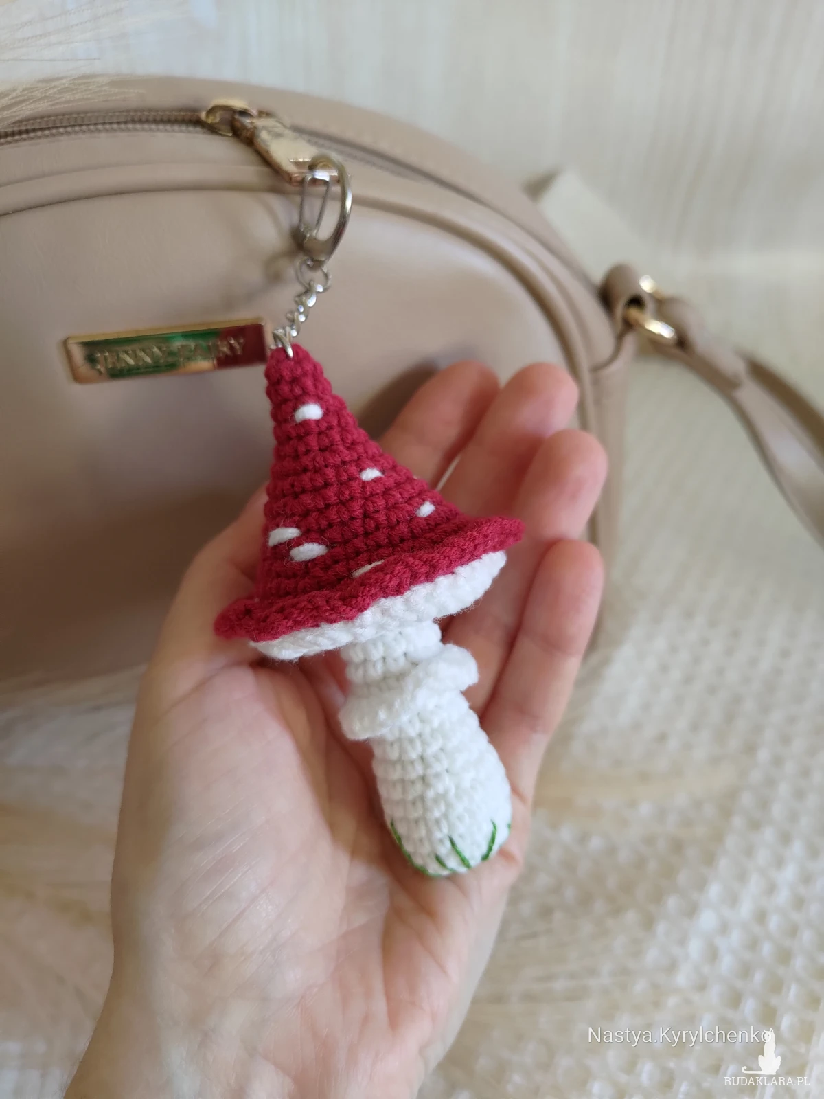 Szydełkowy breloczek muchomorek jest ładny ręcznie robiony dodatek do twojej torebki, plecaka lub kluczy. Świetny pomysł, aby sprawić radość bliskim i podarować im dobry nastrój!