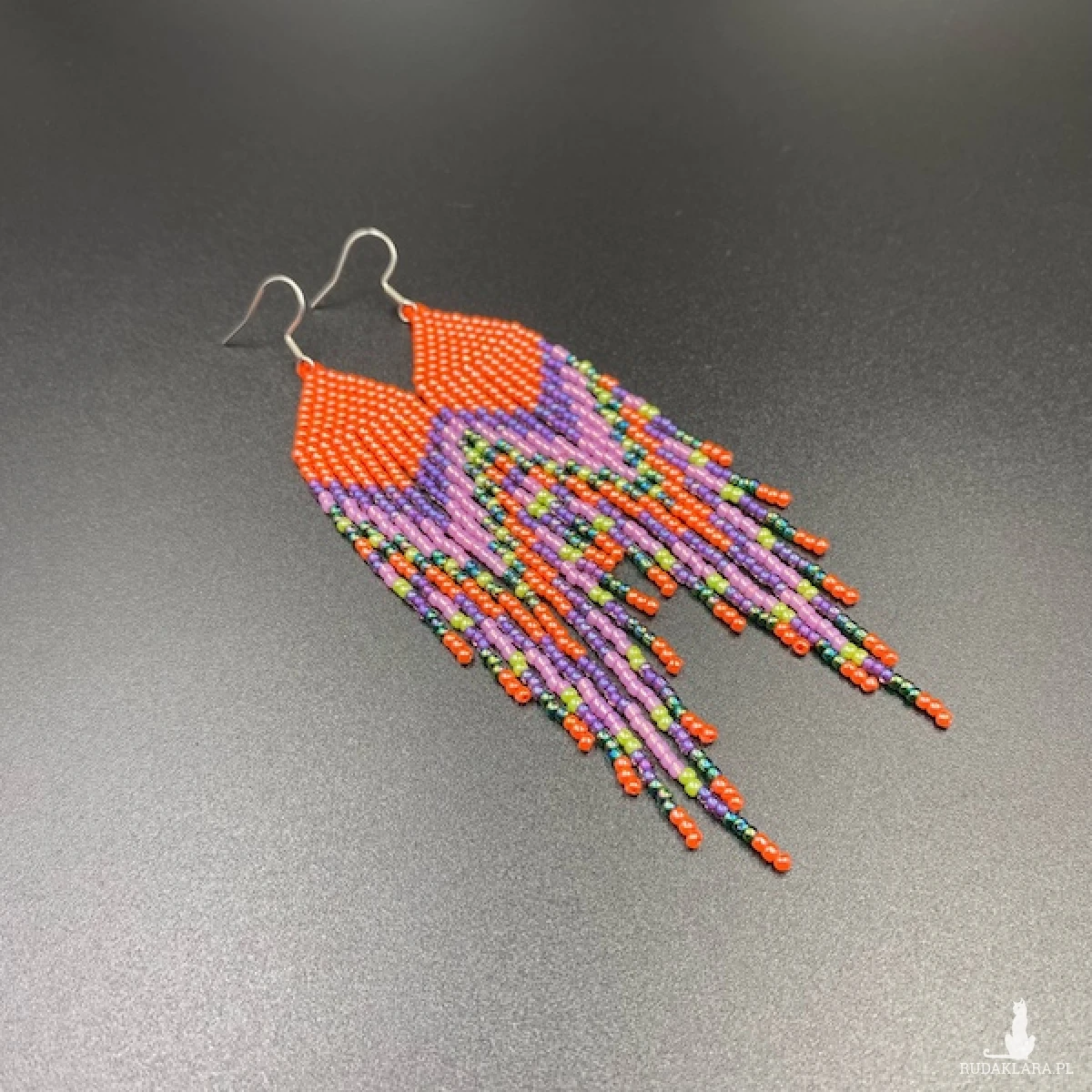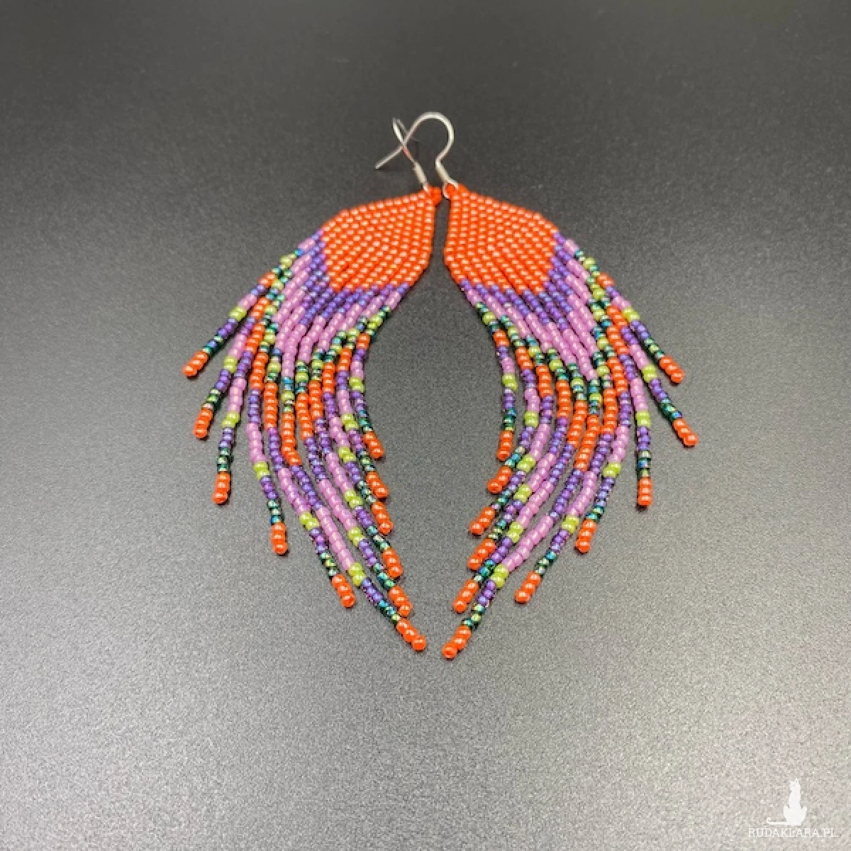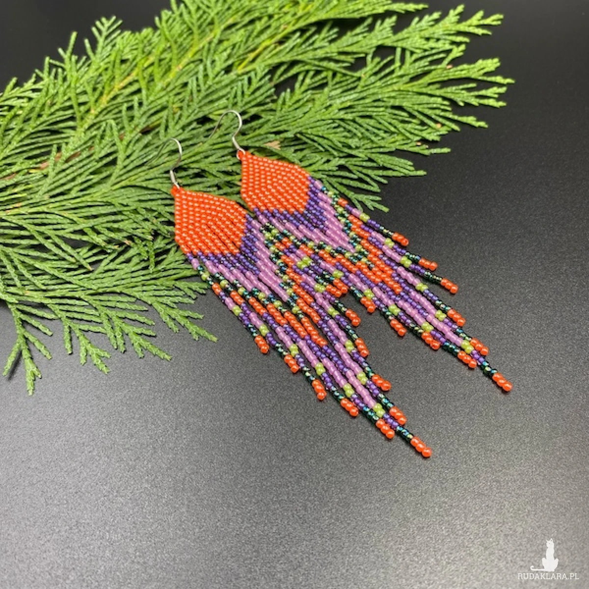 Kolory kolczyków: pomarańczowy, fioletowy, różowy, odcienie zieleni.