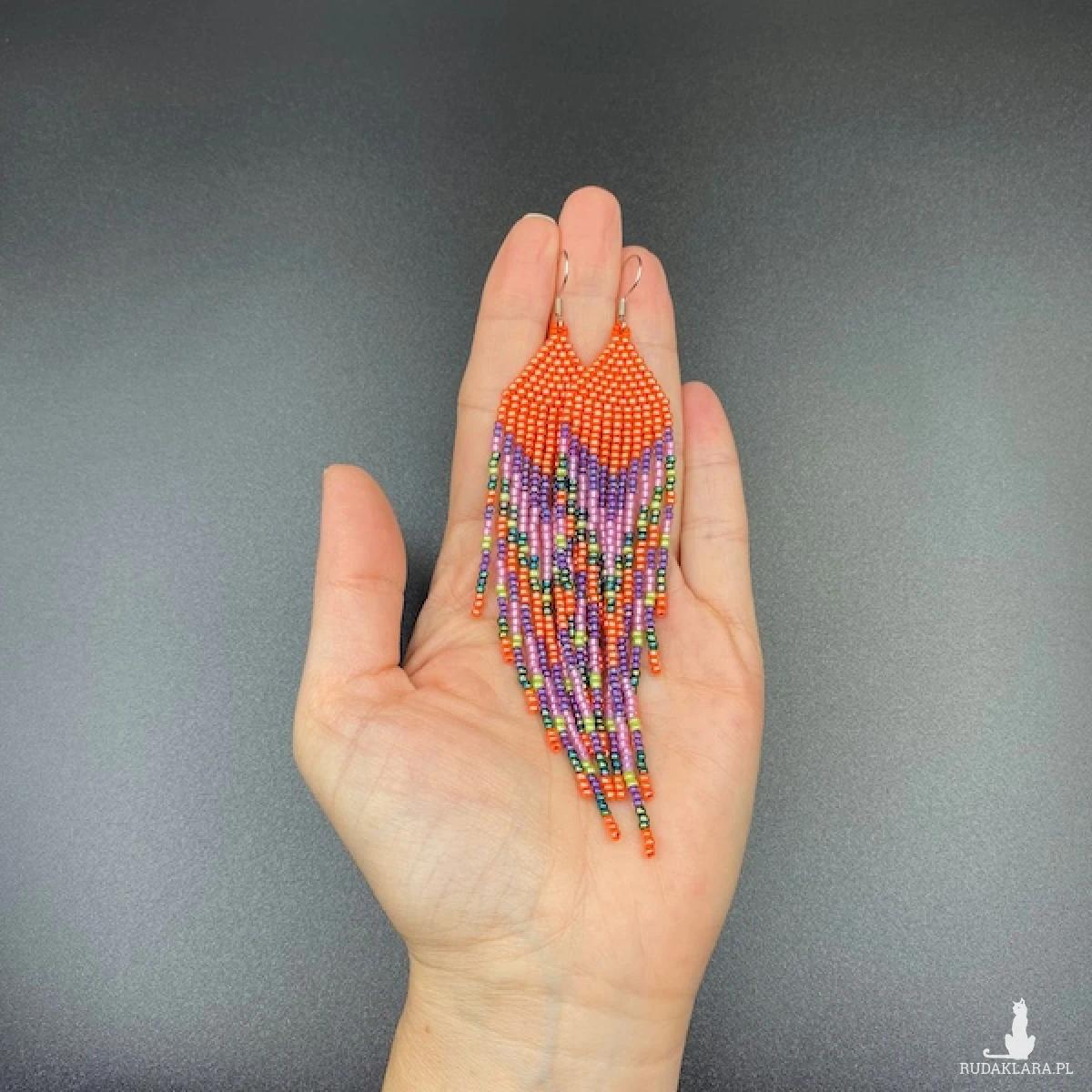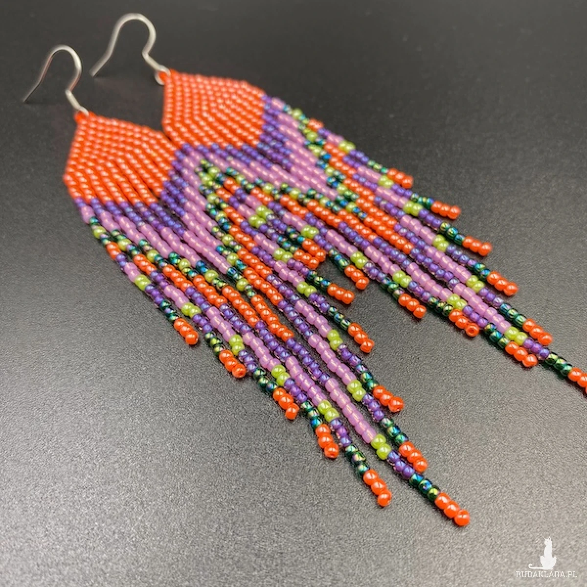 Etniczne kolczyki zostały w 100% utkane ręcznie z koralików TOHO 11. Każdą pracę wykonuję bardzo starannie.