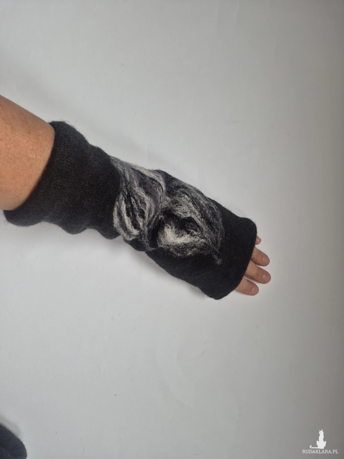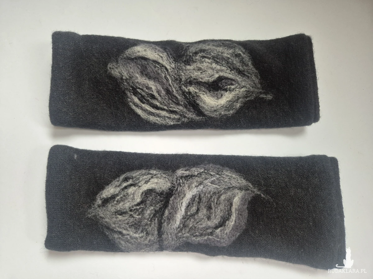 mitenki w kolorze czarnym filcowane wełna merynosów - na podszewce, ciepłe i miłe  box 01 czas oczekiwania tydzien