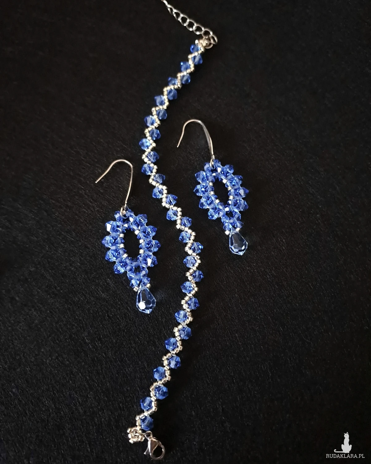 Komplet Biżuterii „Sapphire Clarity” - Bransoletka i Kolczyki z Koralików i Kryształków