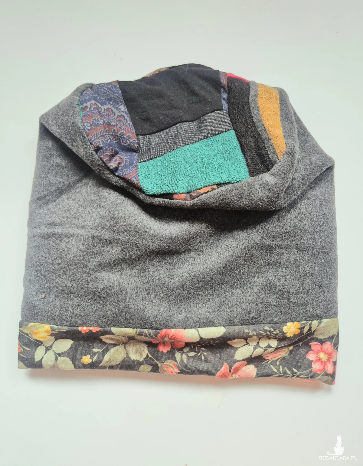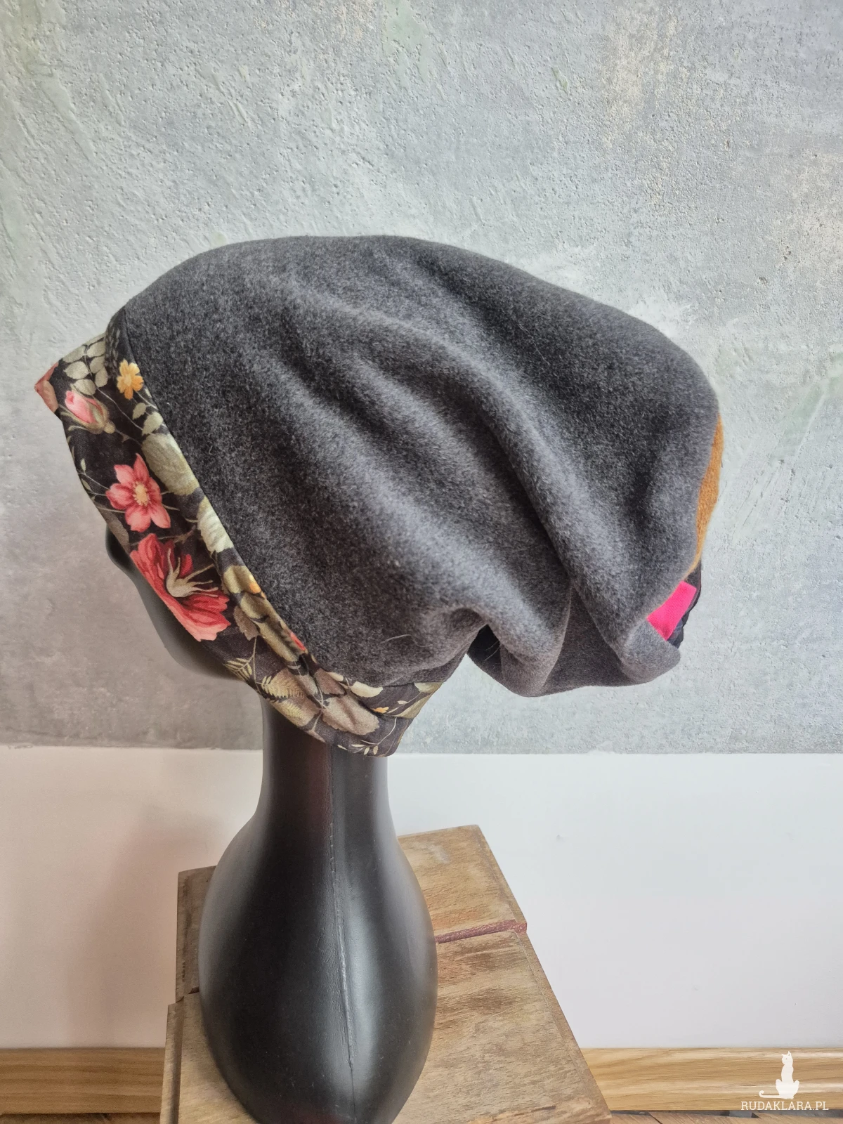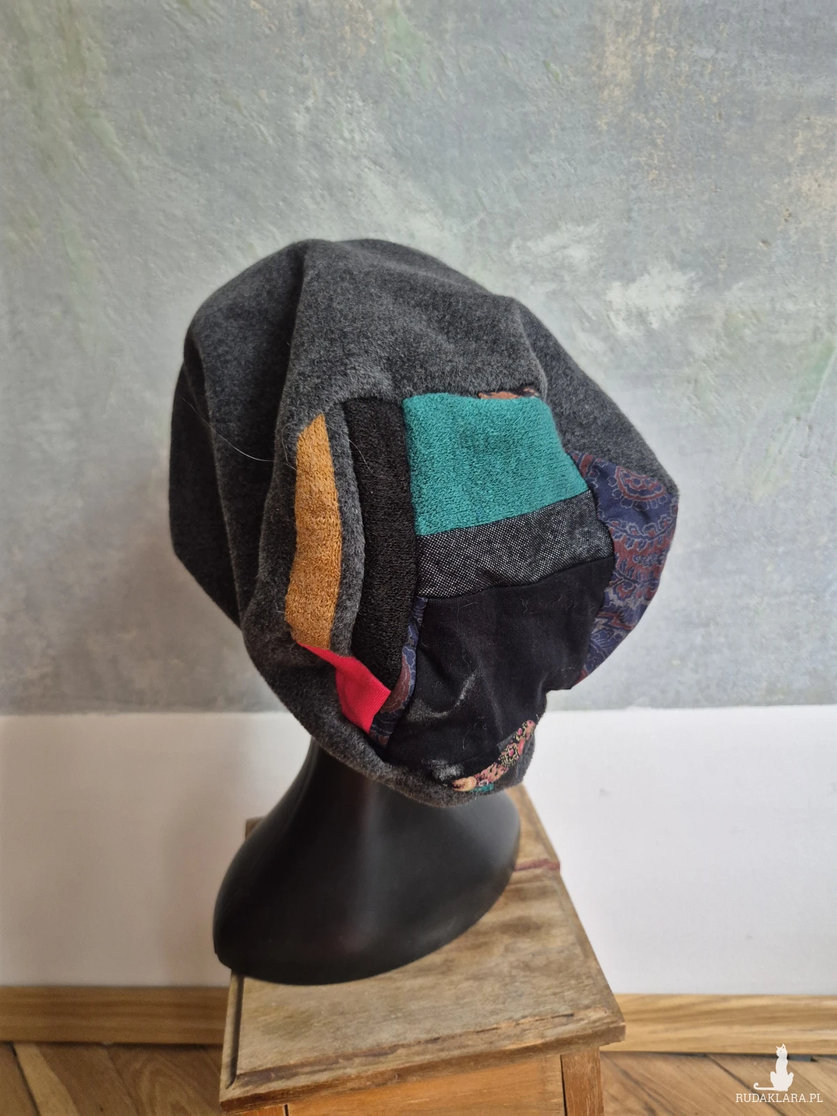 Czapka szara Smerfetka z kolorami na podszewce dobra na codzienne noszenie jeżeli włoży się środek i zawinie to robi się takie turbanowy kształt, czapka uniwersalna rozmiar 57 58cm nie zginiesz w tłumie  , box K1