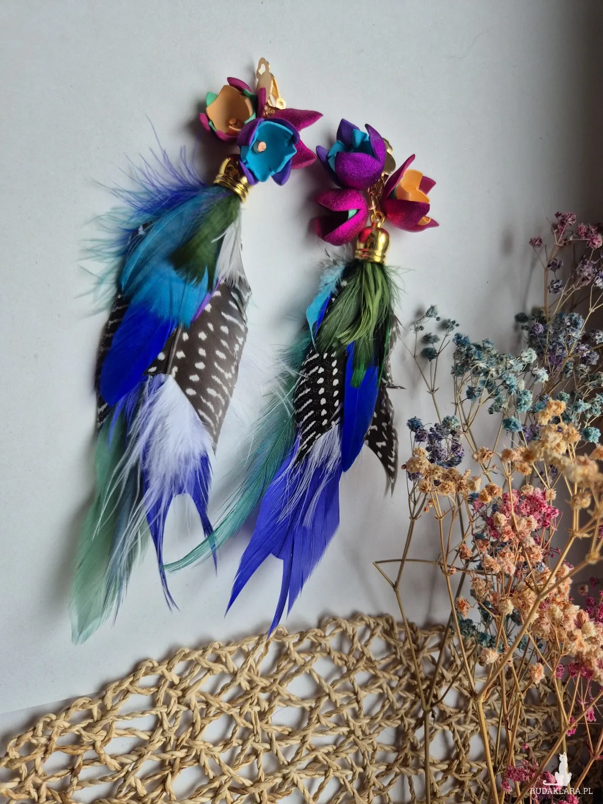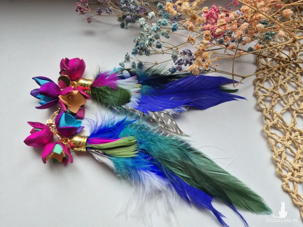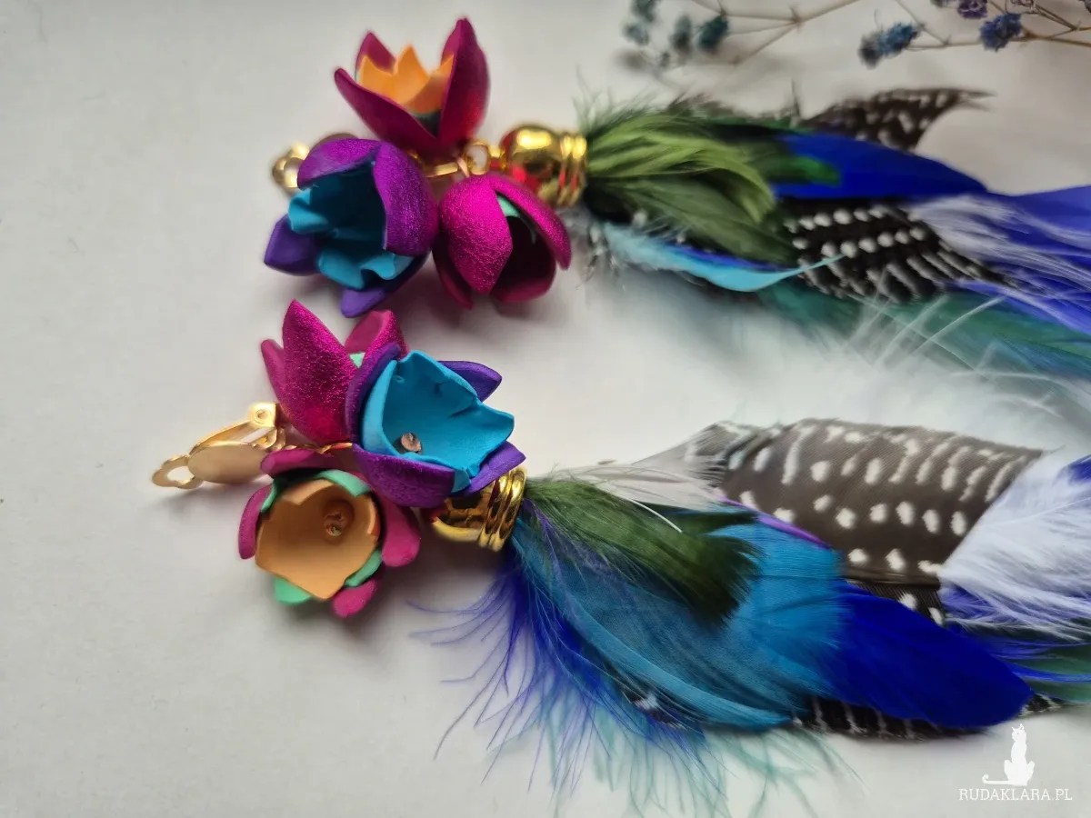 Klipsy pióra leciutkie boho dużej lekkie polecam box X1