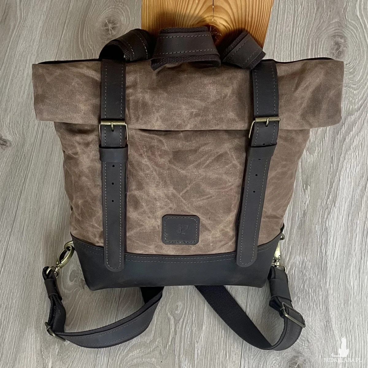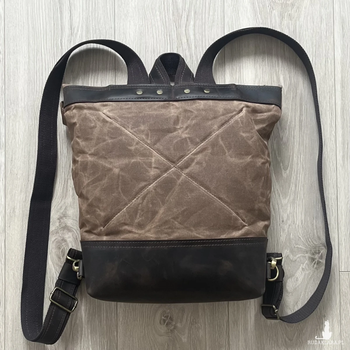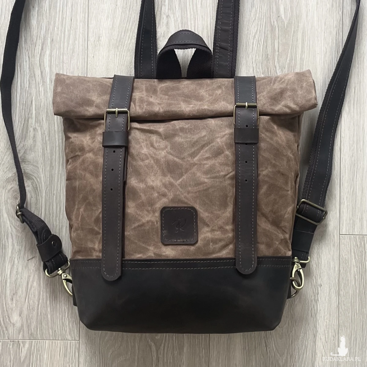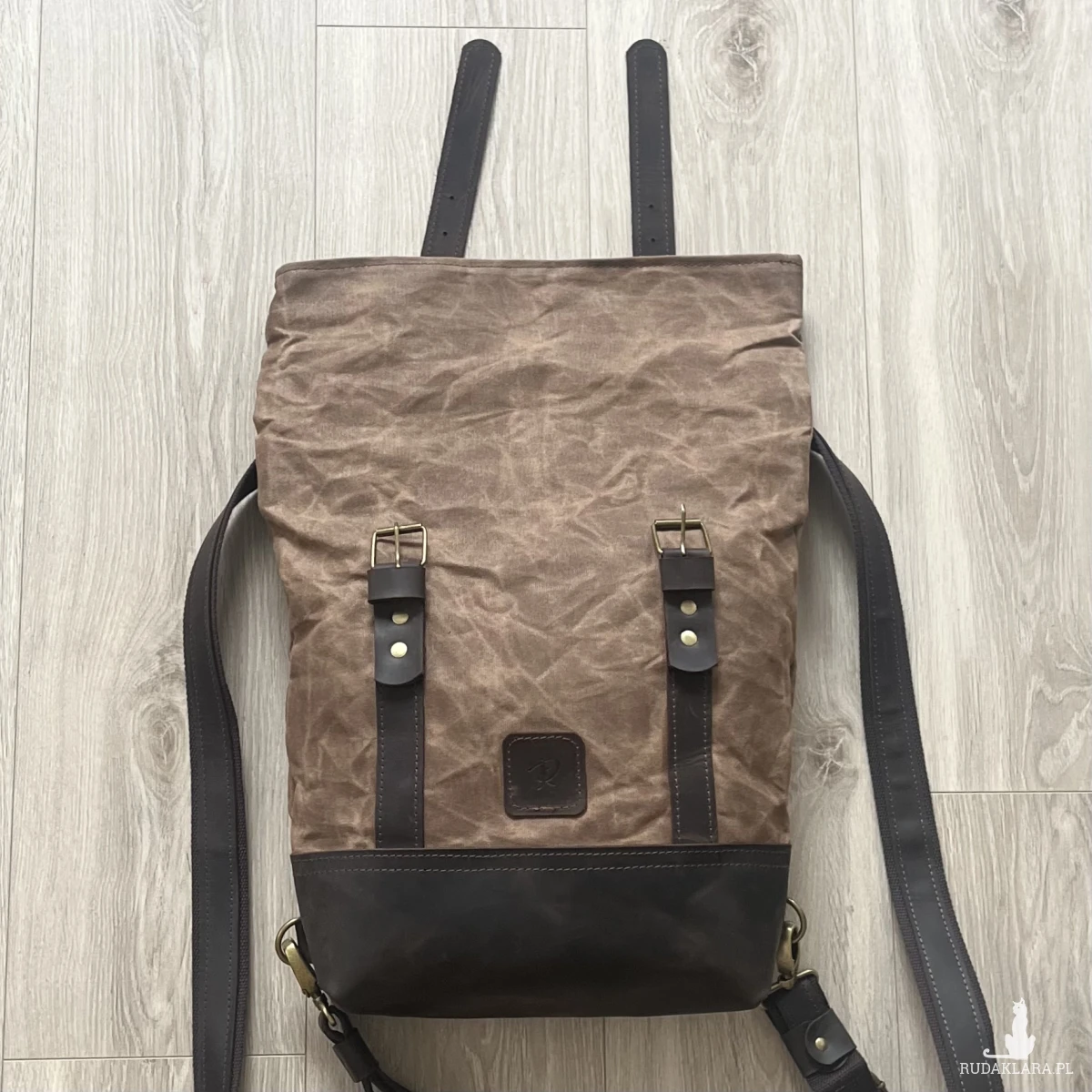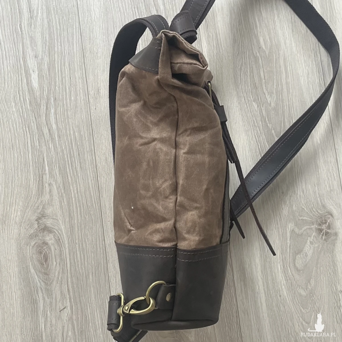 Brązowy plecak z bawełny woskowanej i skóry Crazy Horse - unikat z duszą.