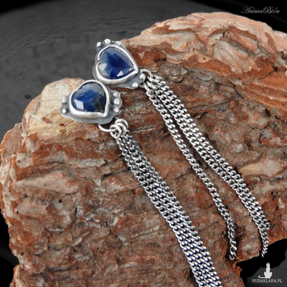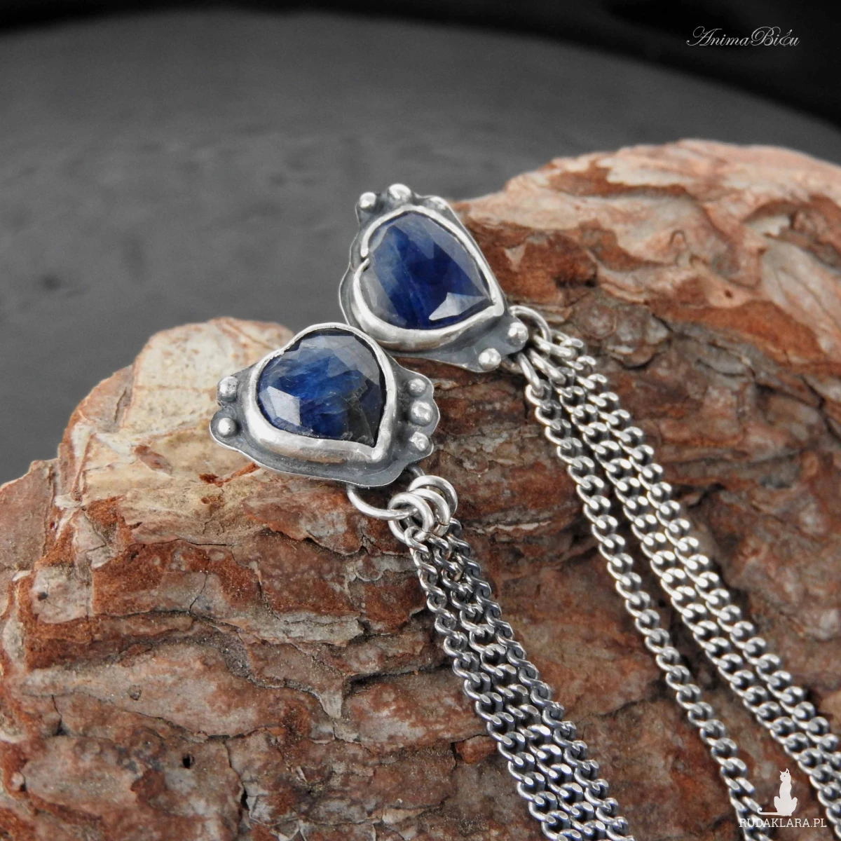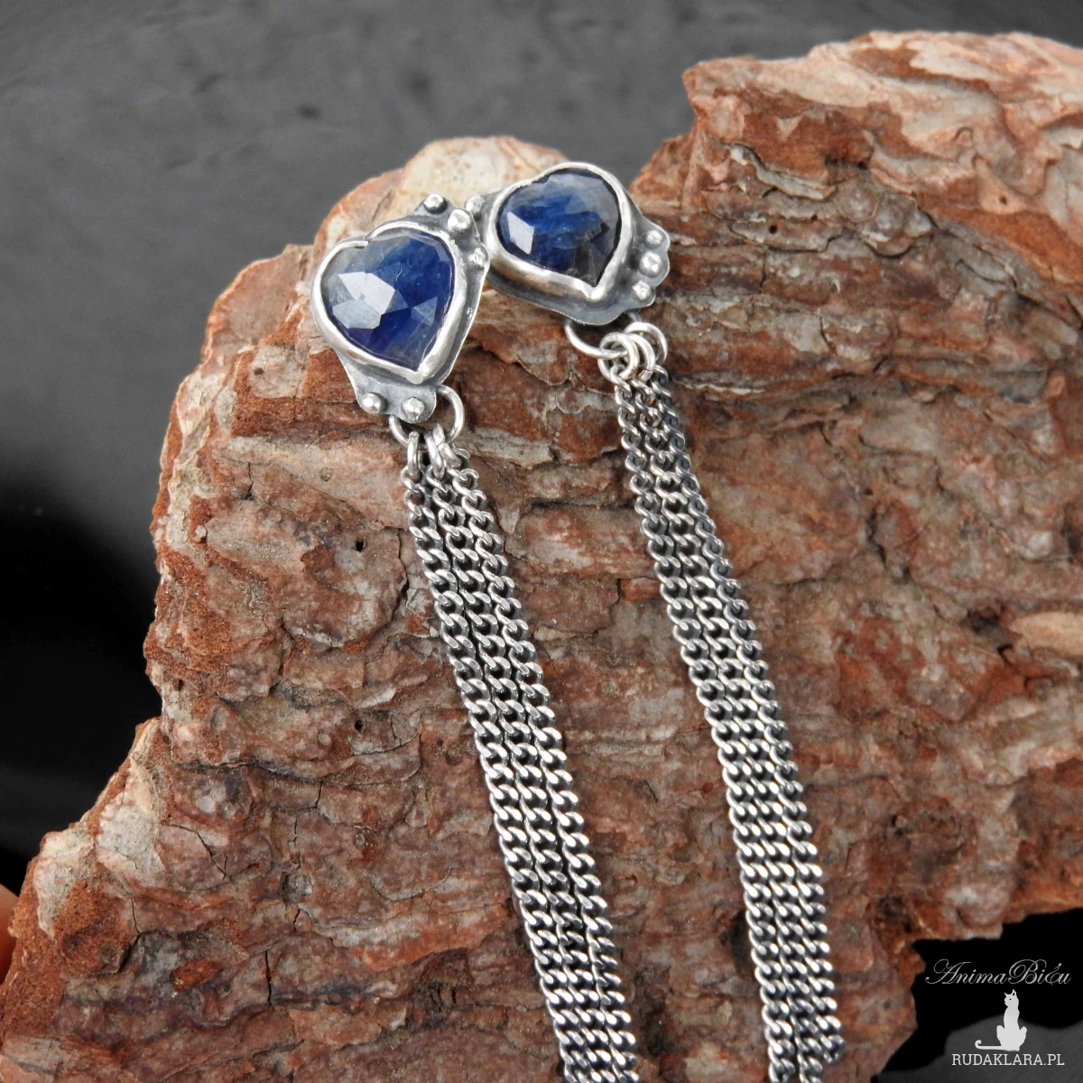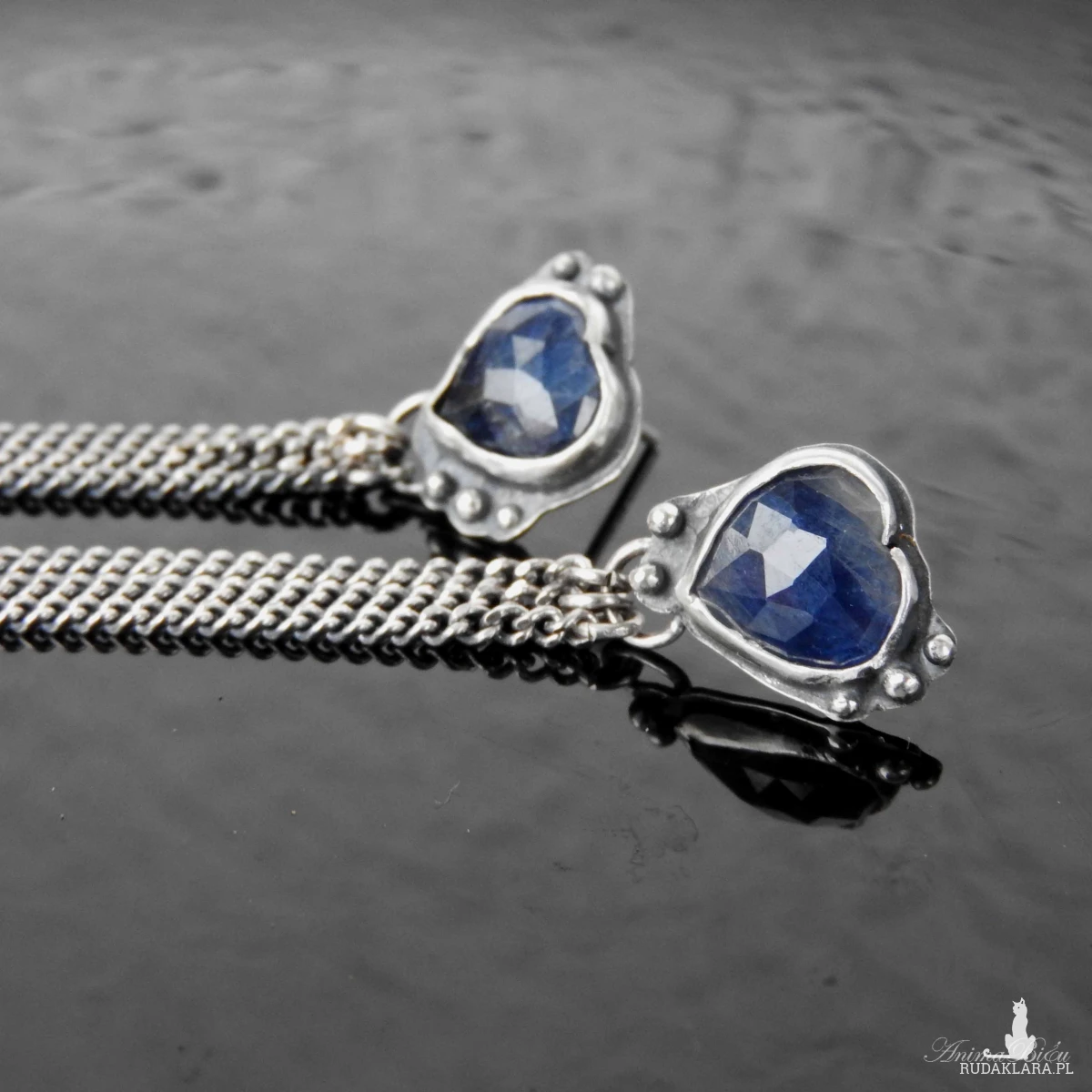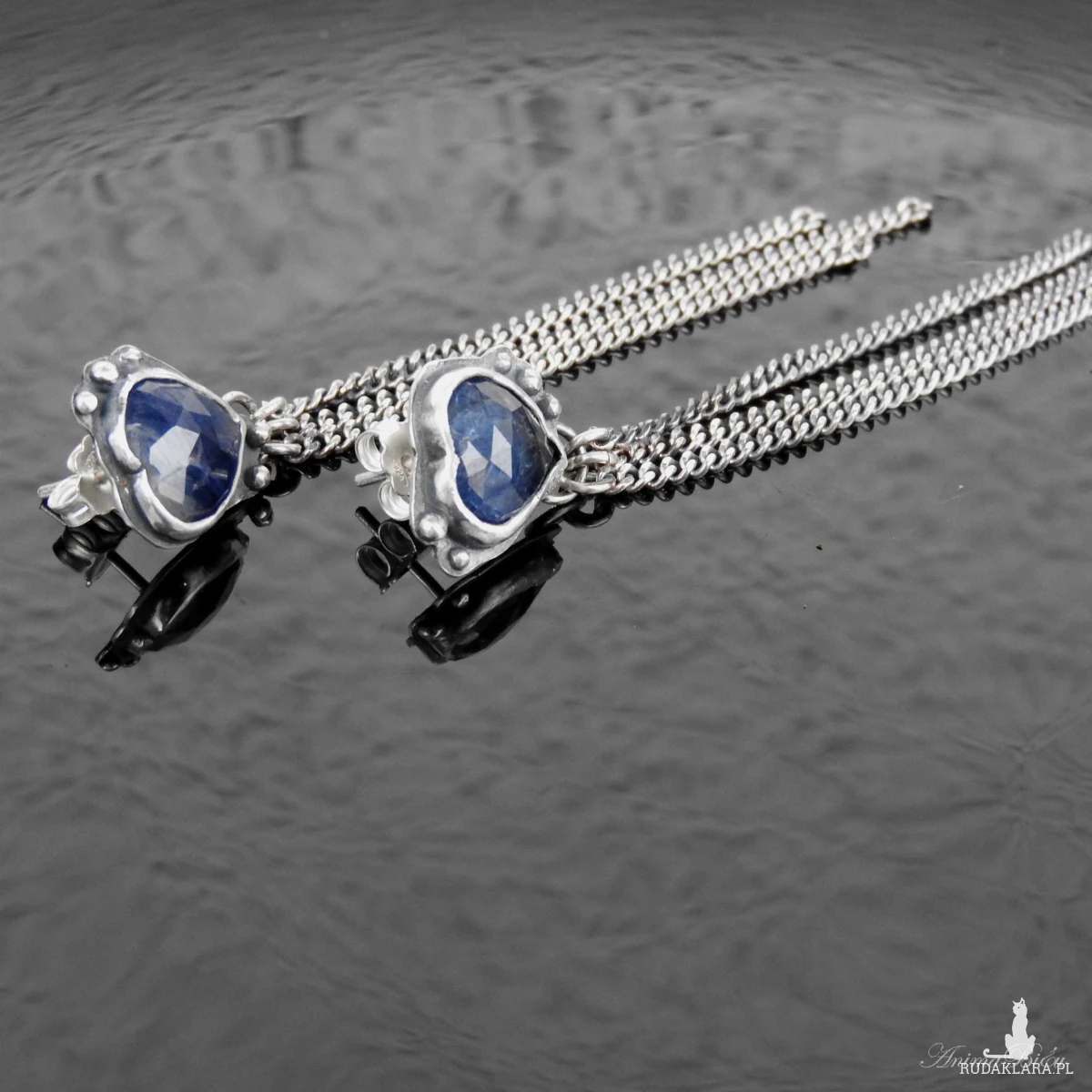 Kolczyki srebrne z szafirami. Wykonane od podstaw ręcznie