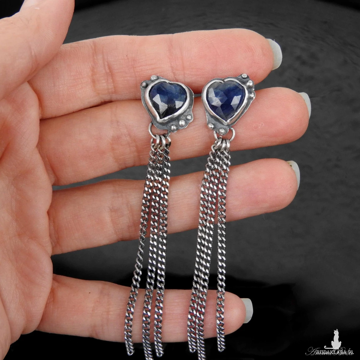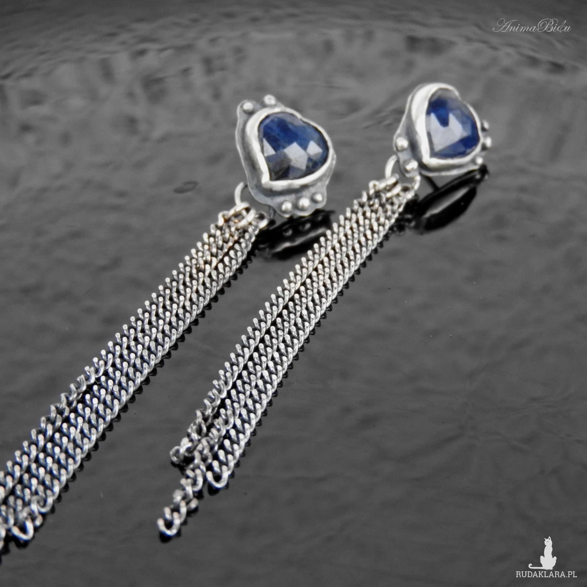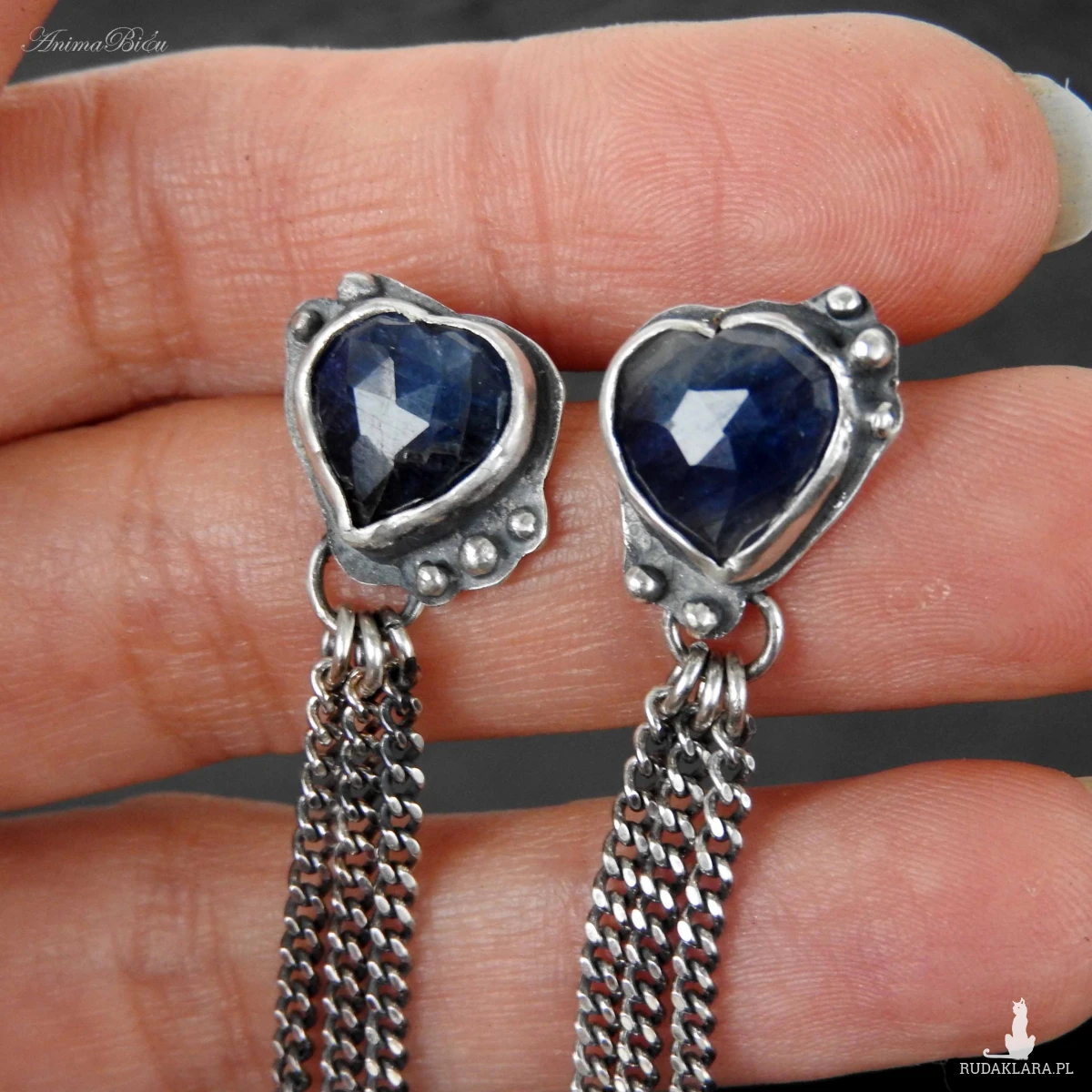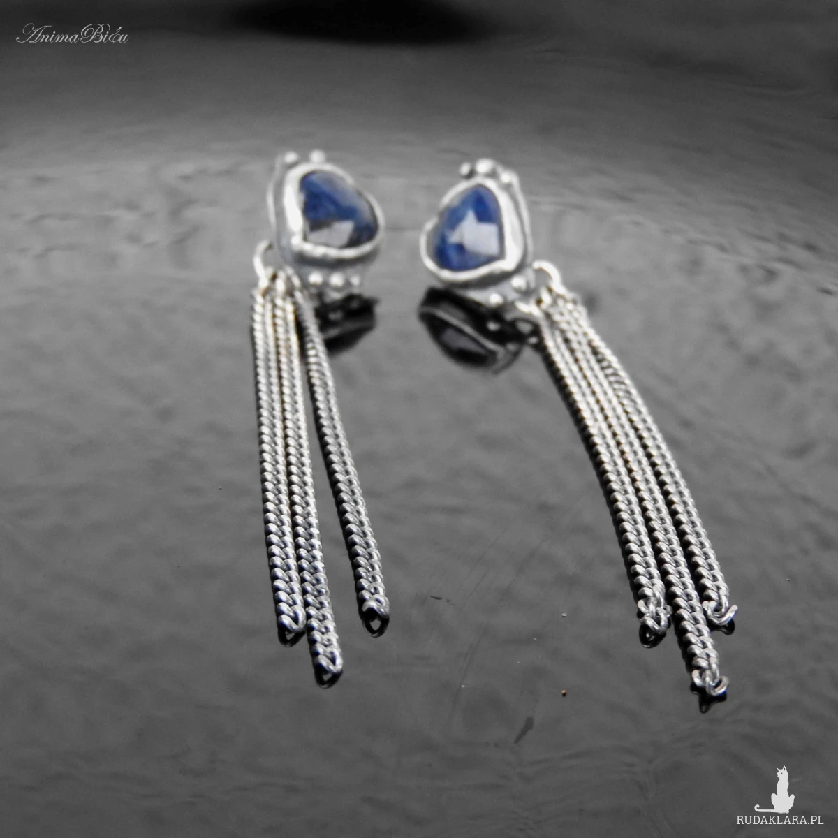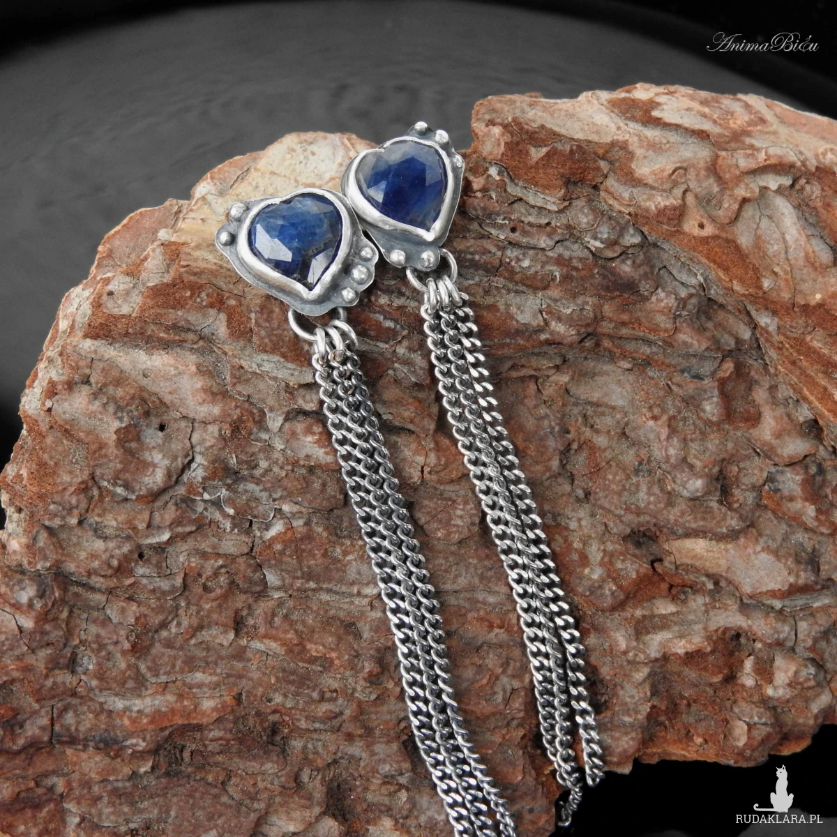 Kolczyki srebrne z szafirami. Wykonane od podstaw ręcznie