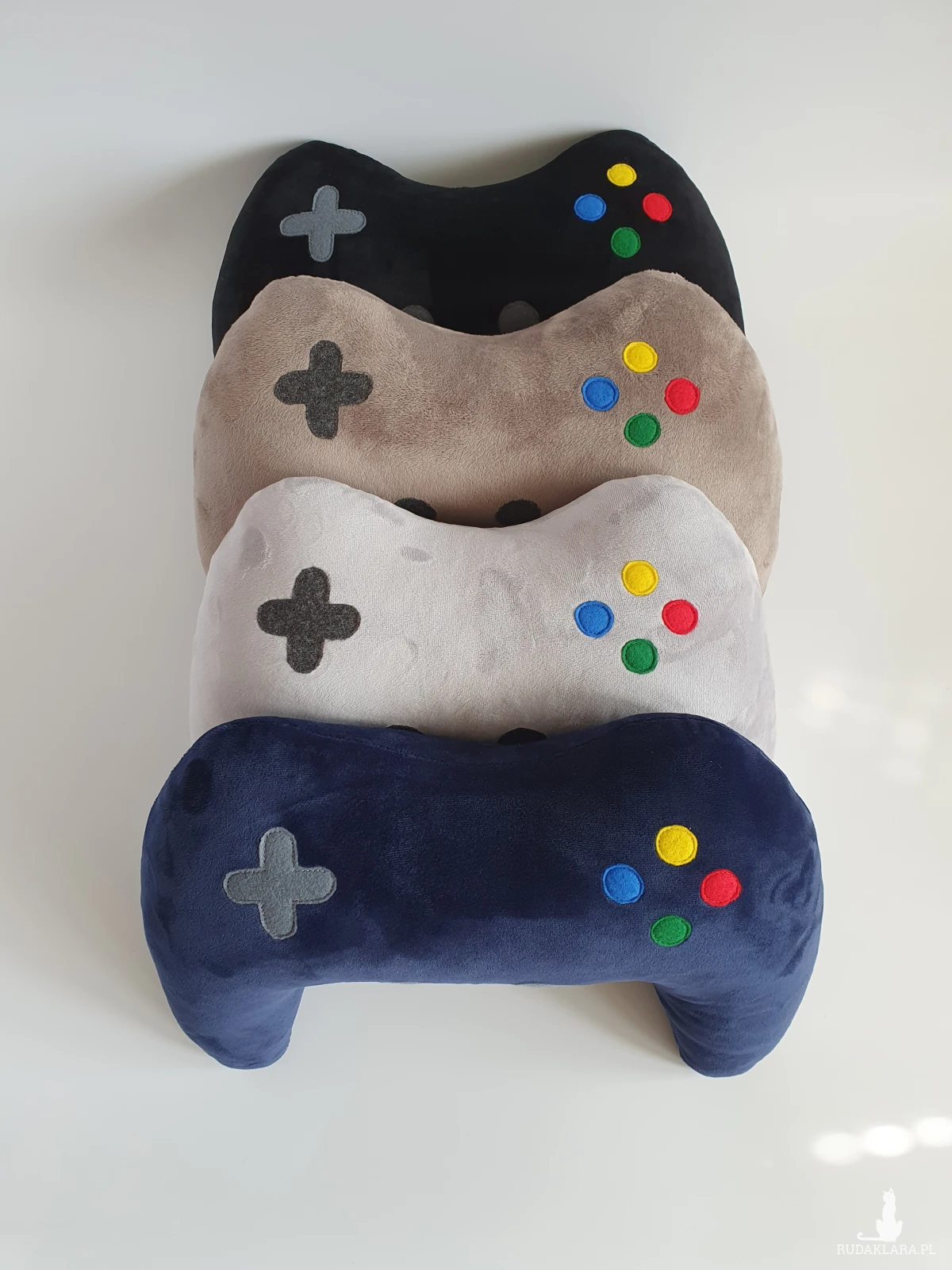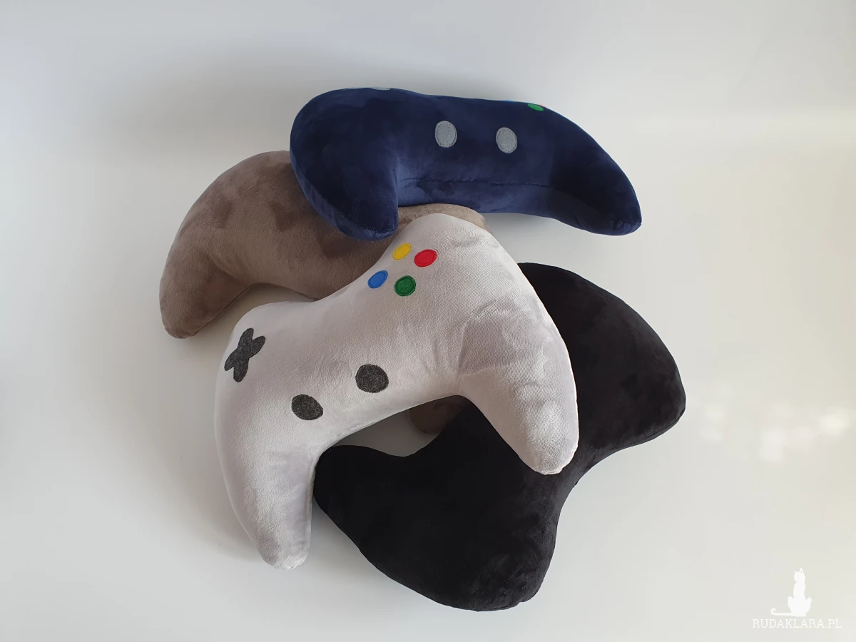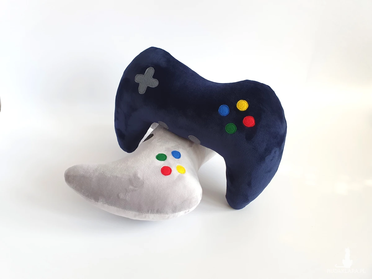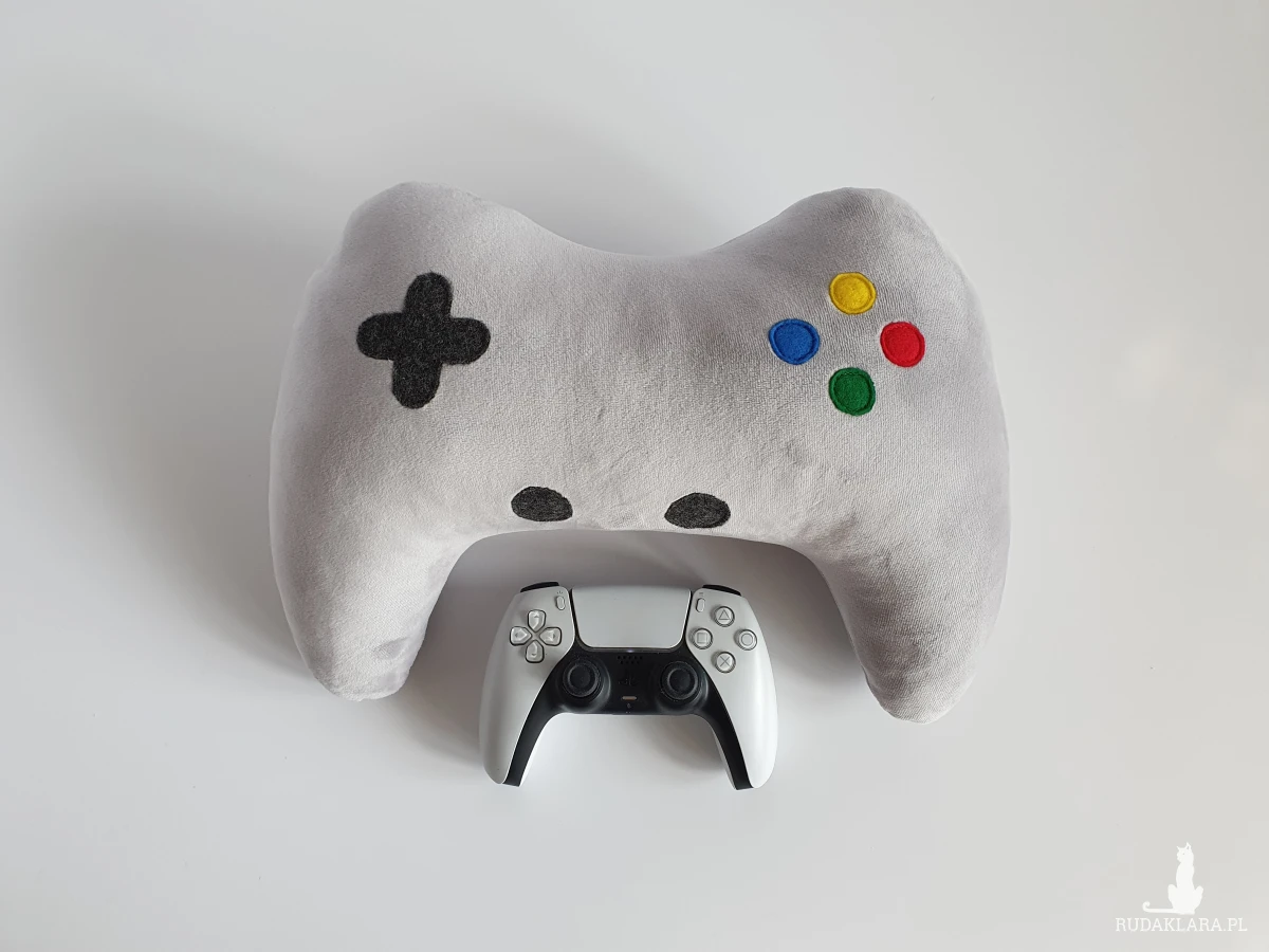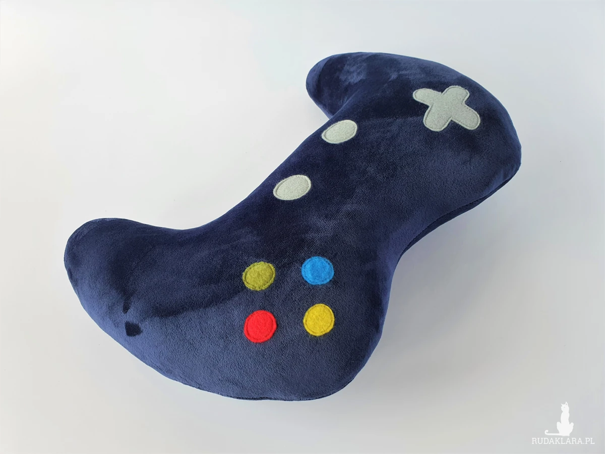 Miękka i miła w dotyku poduszka dekoracyjna w kształcie pada dla młodego gracza.