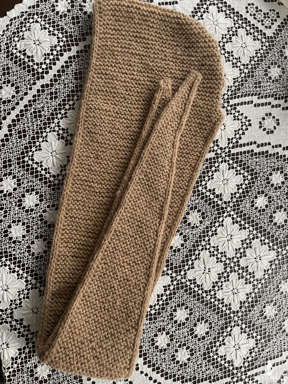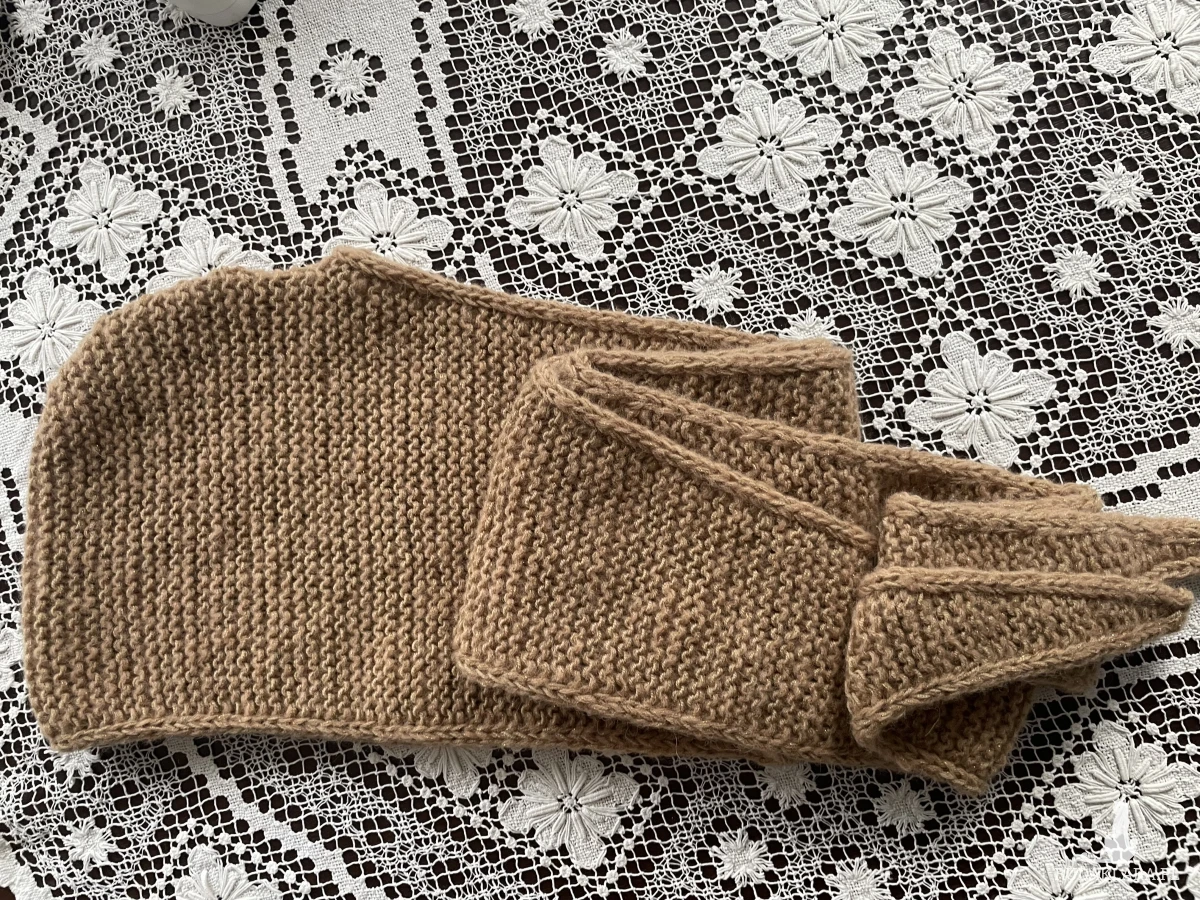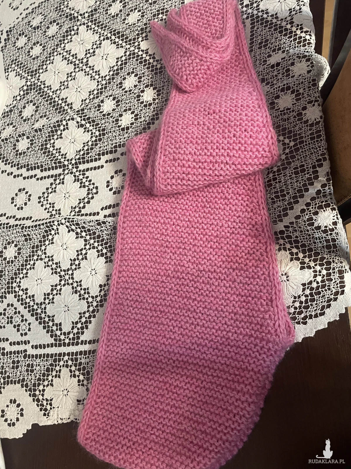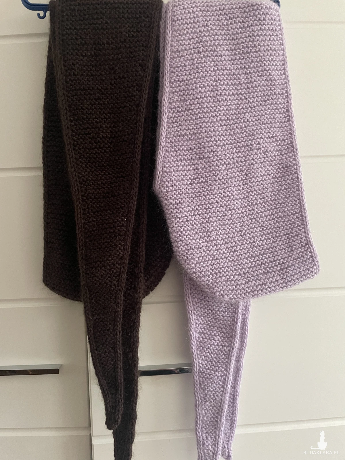 Nakrycie głowy w formie kaptura połączone z długim szalikiem. Wykonany na drutach z włóczki merino w połączeniu z alpaka z dodatkiem delikatnej złotej nitki. Jest możliwość wykonania w innym kolorze, propozycje kolorów na zdjęciu. Termin realizacji 7 dni.