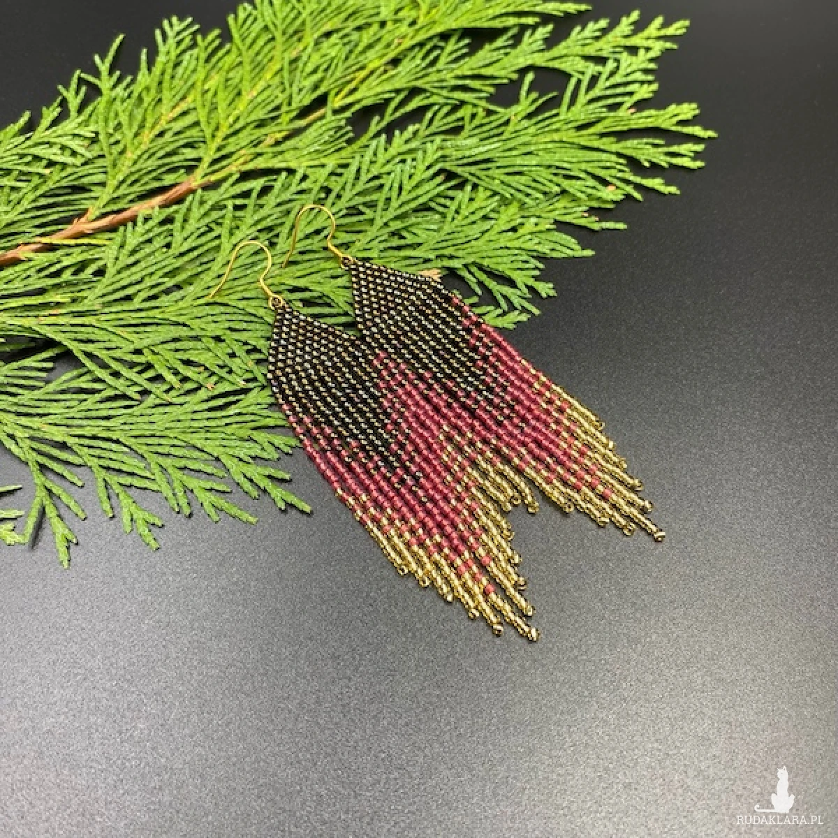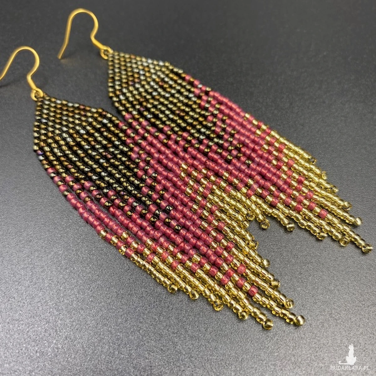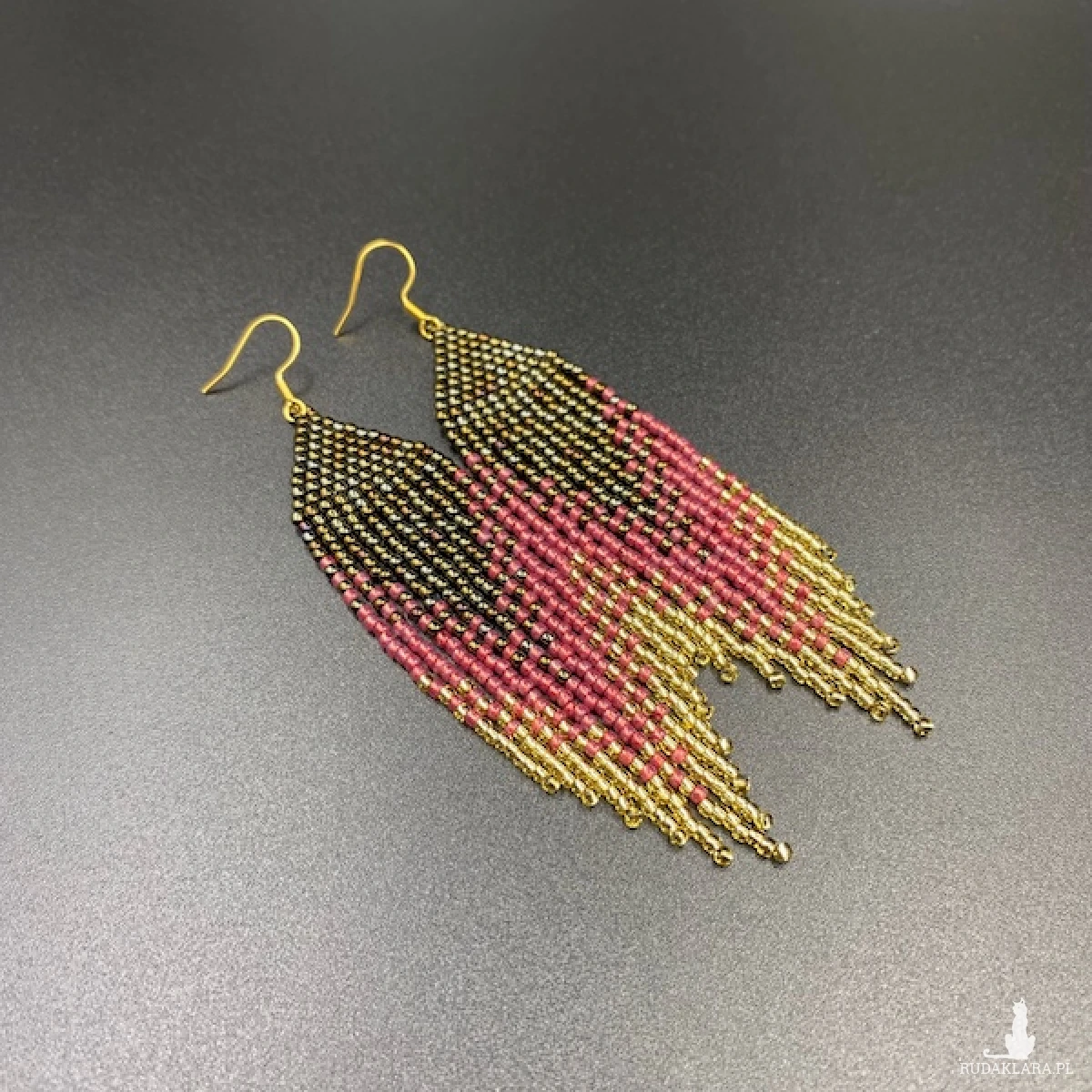 Kolory kolczyków: metaliczny brązowy, malinowy, jasny złoty.
