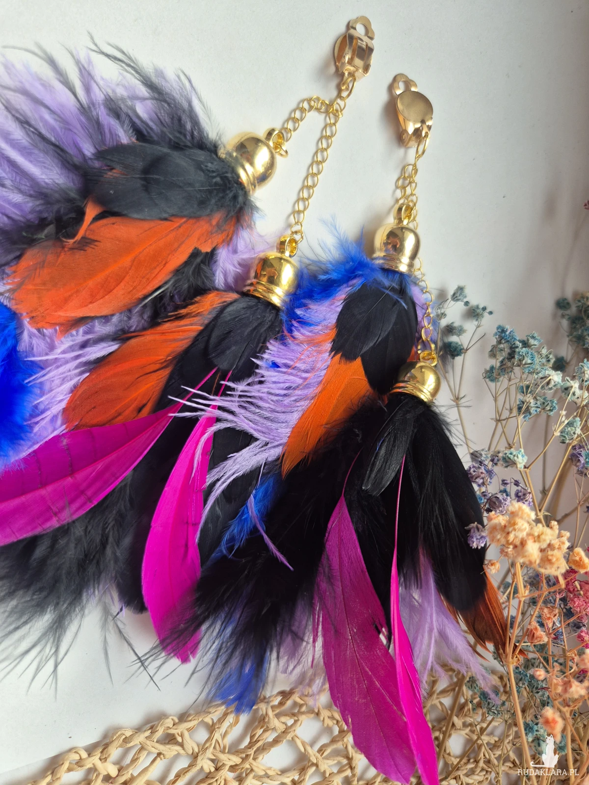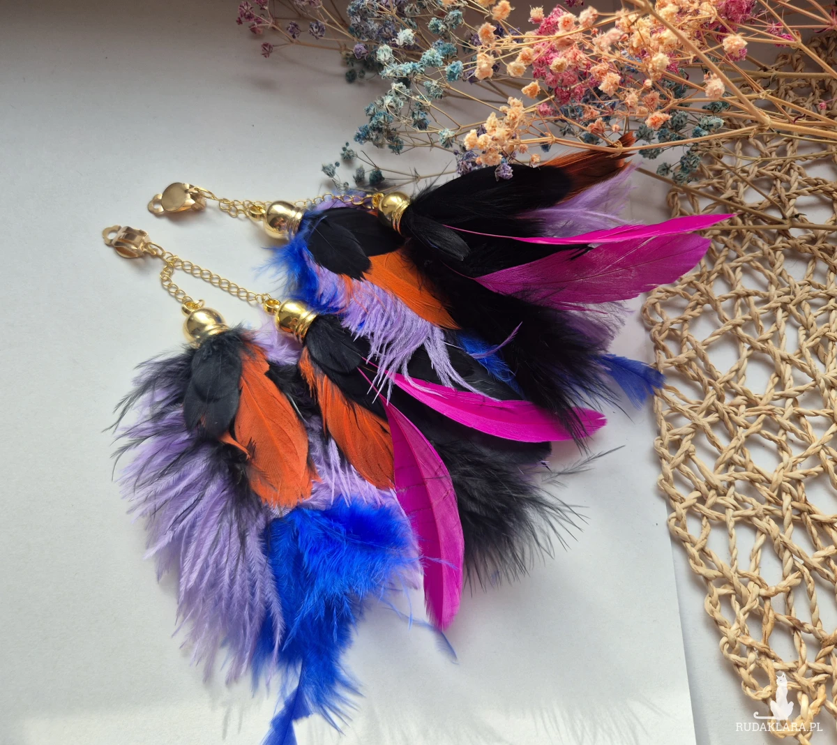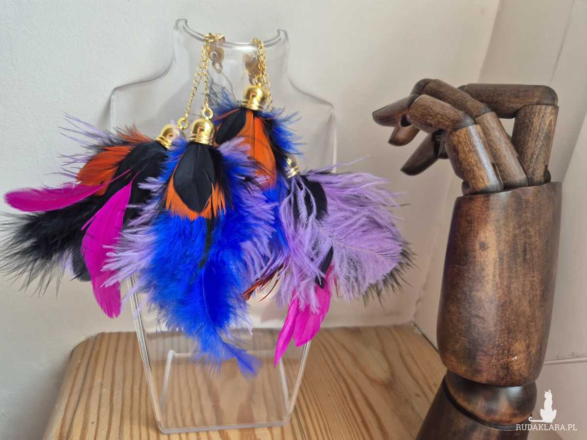 Klipsy pióra leciutkie boho dużej lekkie polecam box X1