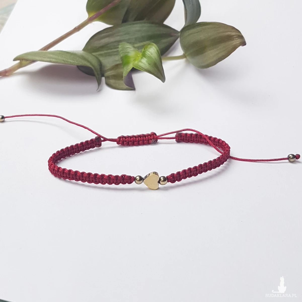 Bransoletka Bordowa z serduszkiem i kuleczkami z hematytu. Duża, na