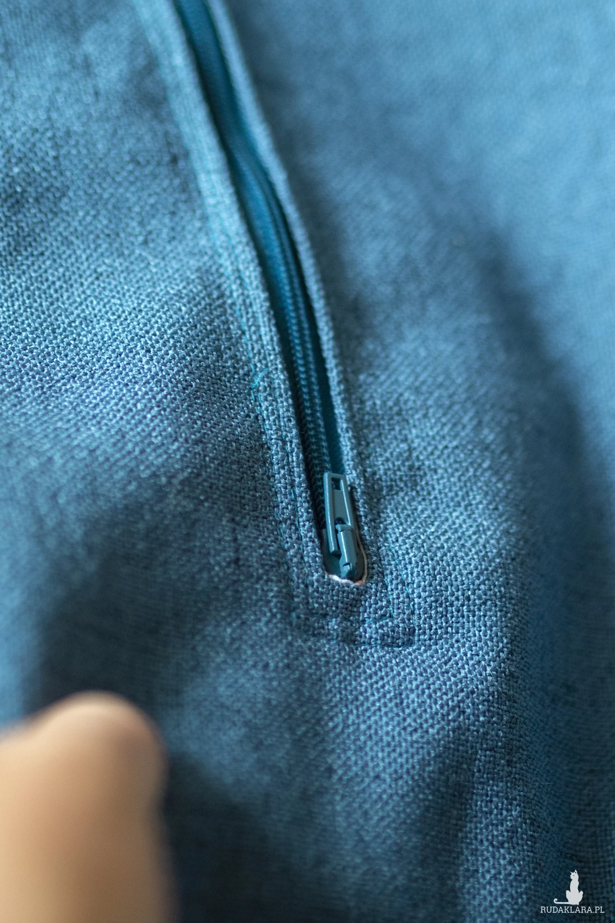 Torebka w środku oraz z tyłu posiada kieszonki zapinane na suwak. Biała, bawełniana podszewka w kwiatki.