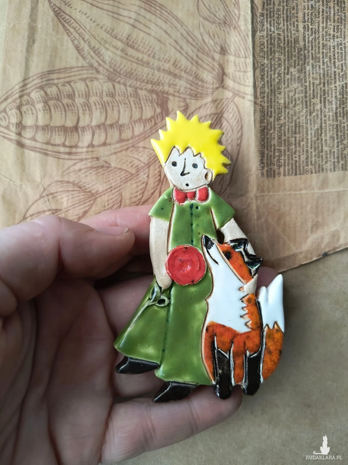 Broszka z motywem bajkowym, wykonana z gliny szamotowej wypalona na biskwit, a następnie szkliwiona w temperaturze 1260 stopni C. Wymiary ok: 6 cm x 10 cm. Serdecznie polecam wszystkim miłośnikom biżuterii.