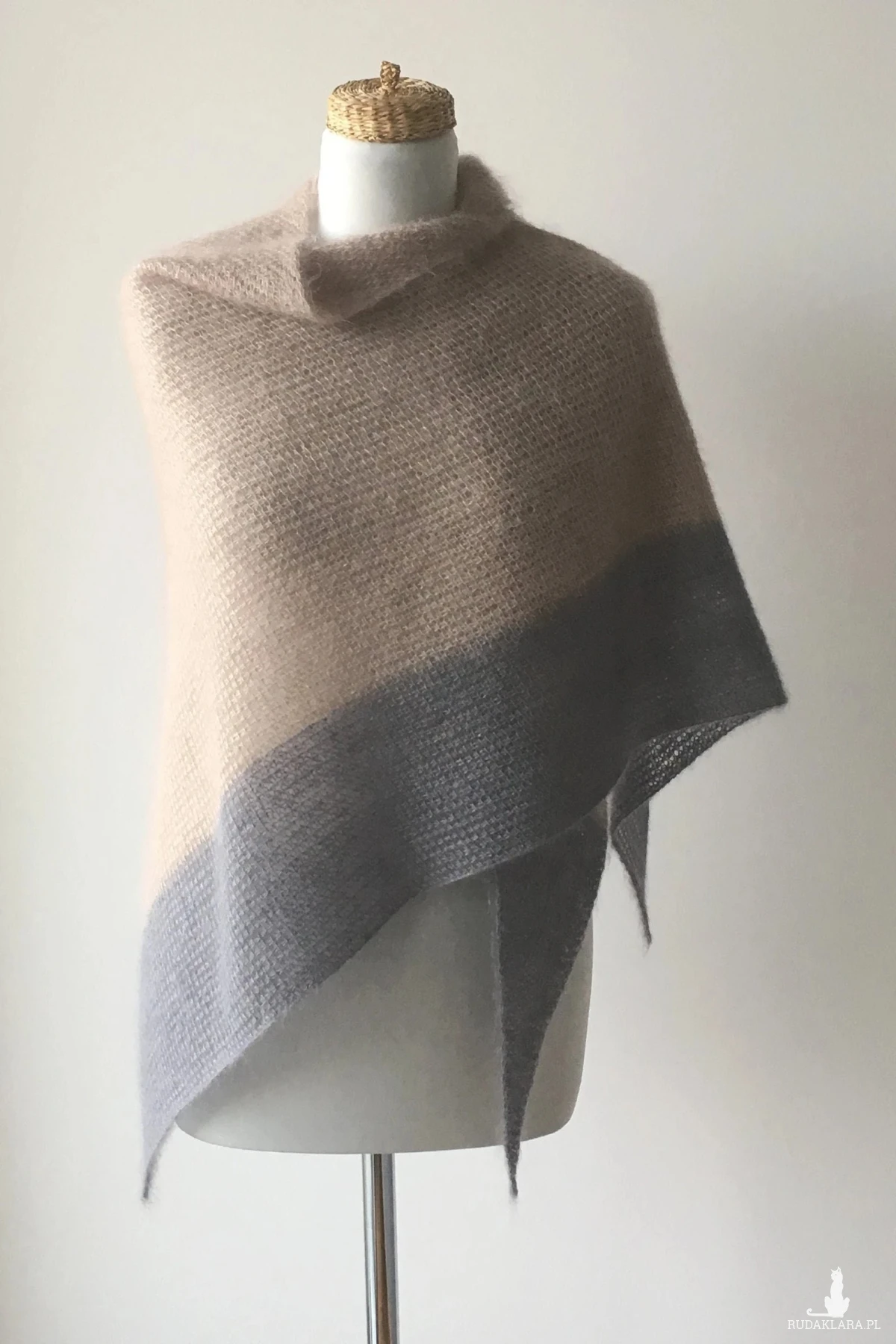 Wykonany z bardzo miękkiej i luksusowej włóczki z mieszanki moheru kóz angorskich i jedwabiu. Połączenie prostego wzoru i luksusowej włóczki.