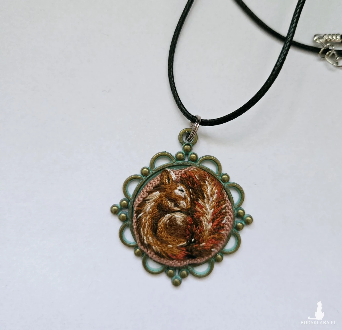Średnica zawieszki 4cm. Sznurek woskowany w kolorze czarnym o całkowitej długości 60cm