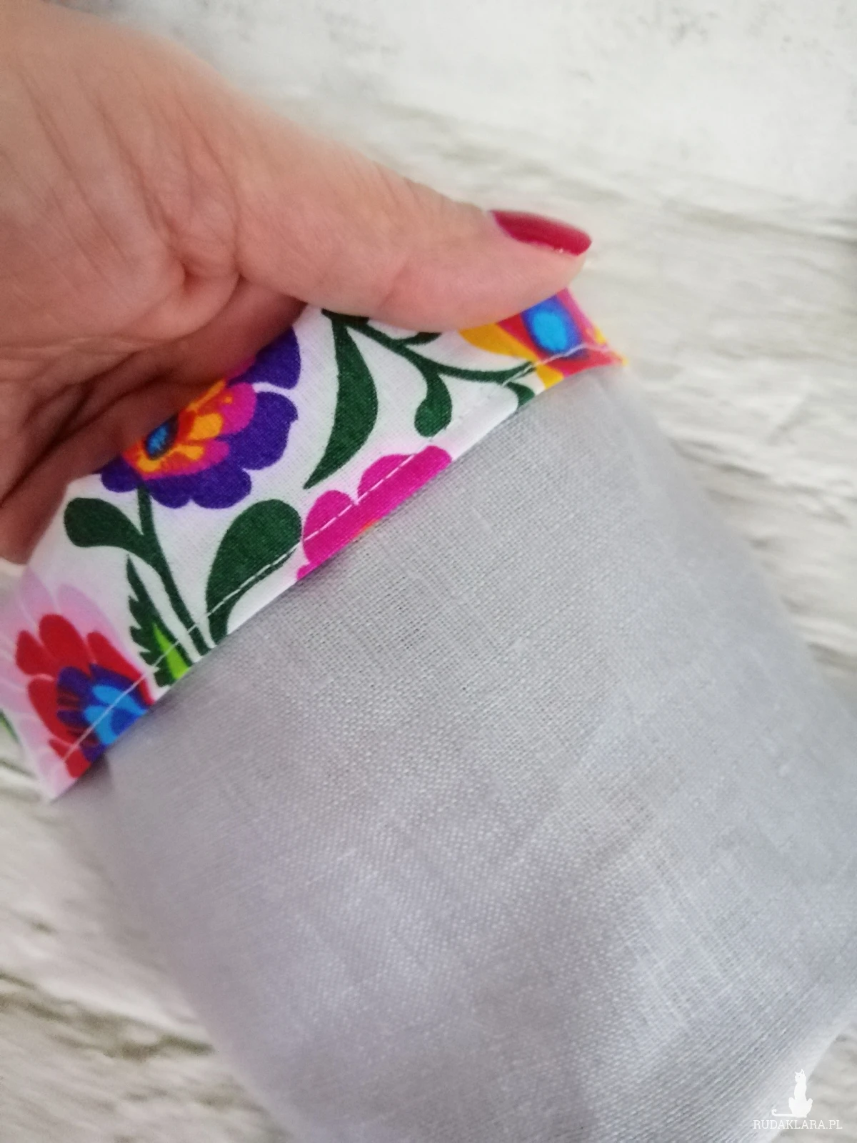 Worek,osłonka na nie atrakcyjna doniczkę wykonana z tkaniny bawełnianej