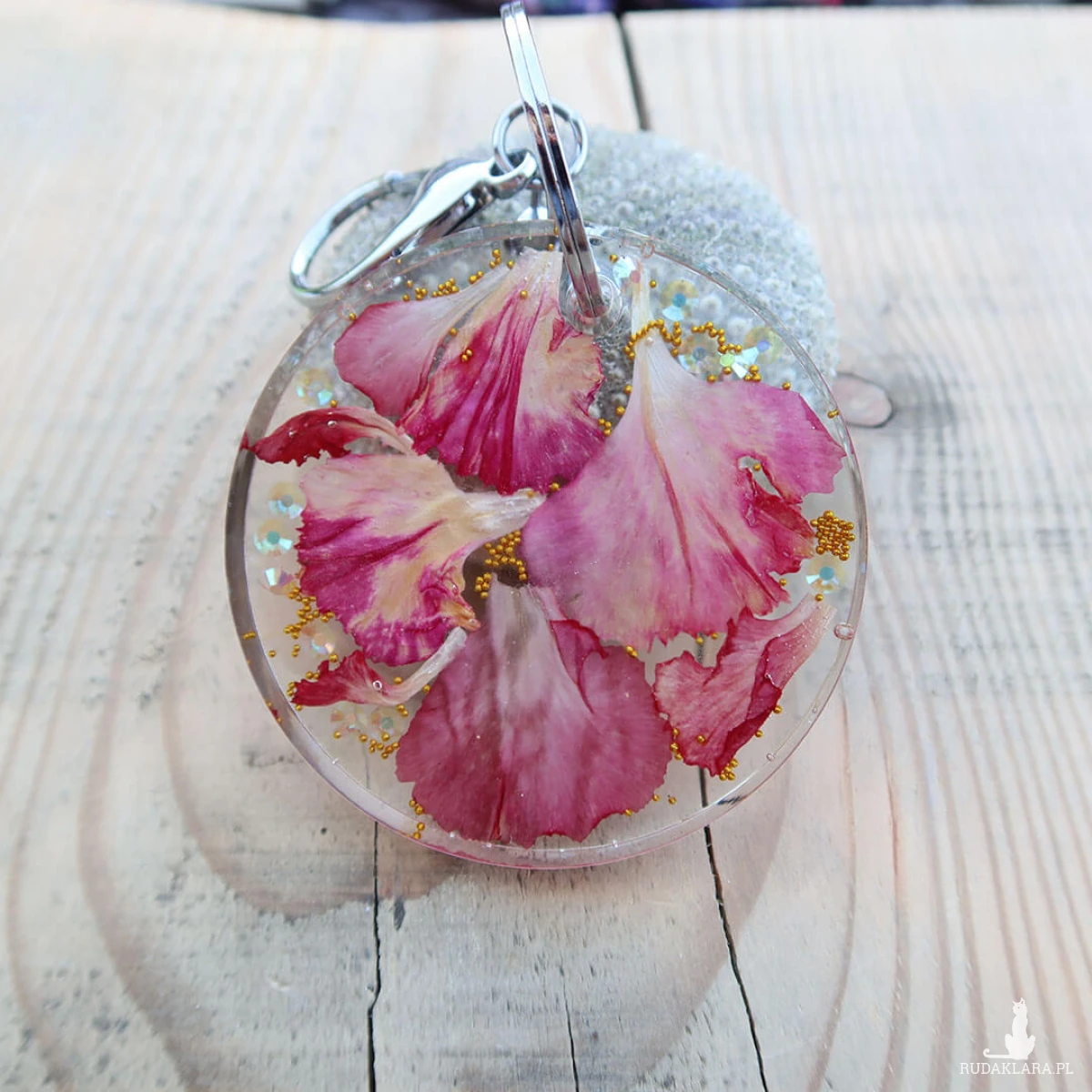 Wykonany z trwałych materiałów, zapewnia nie tylko estetykę, ale także funkcjonalność. To idealny sposób na wyrażenie Twojej miłości do natury i unikalnego stylu. Przywołaj wiosenny powiew świeżości z naszym brelokiem z żywicy epoksydowej z prawdziwymi płatkami kwiatów i ciesz się jego pięknem przez wiele lat.