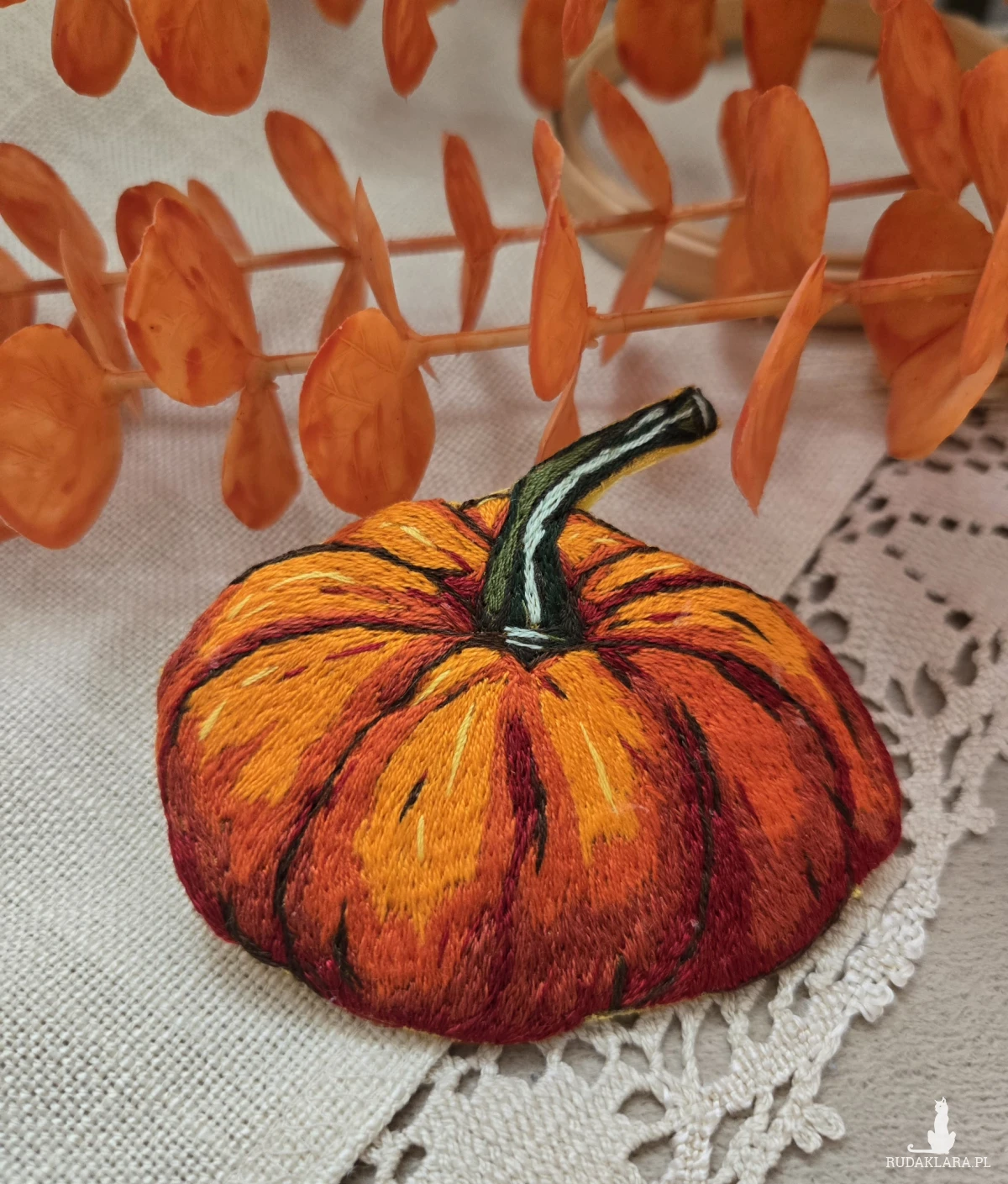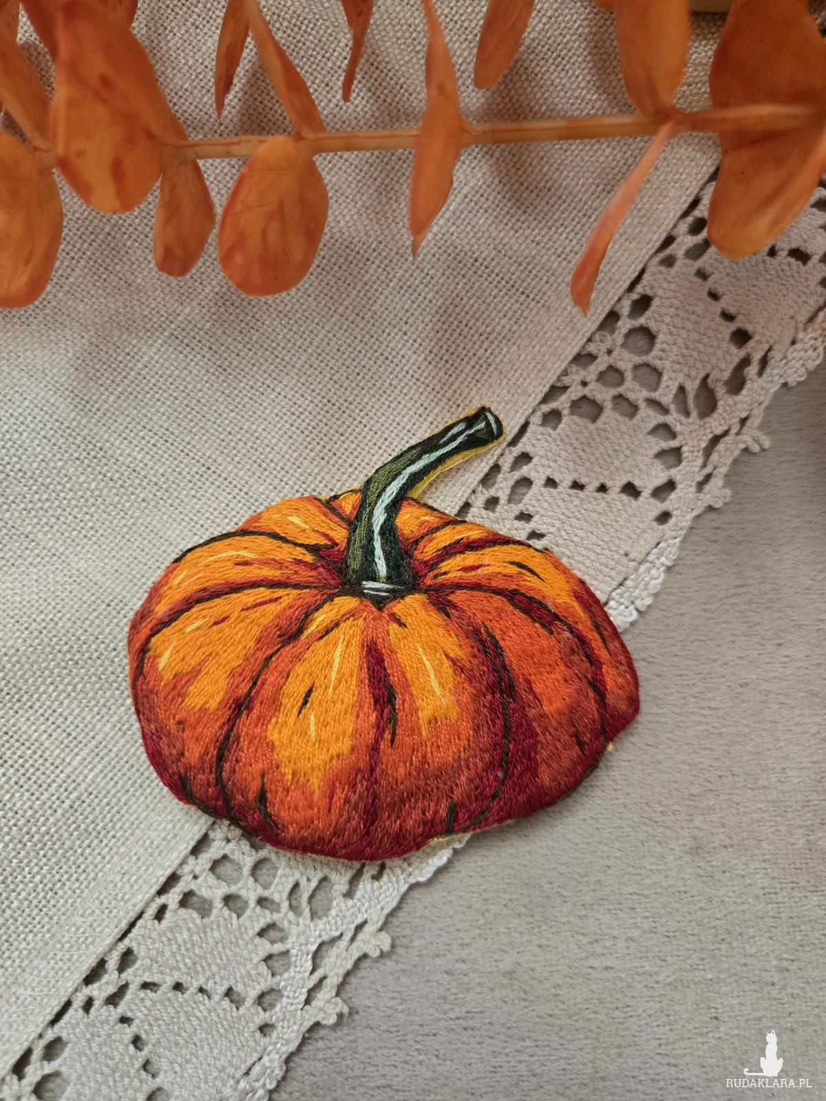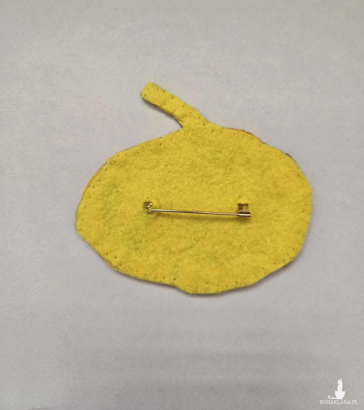 Broszka ręcznie wyszywana Dynia. Podszyta filcem w kolorze żółtym. Idealny dodatek do jesiennych stylizacji.