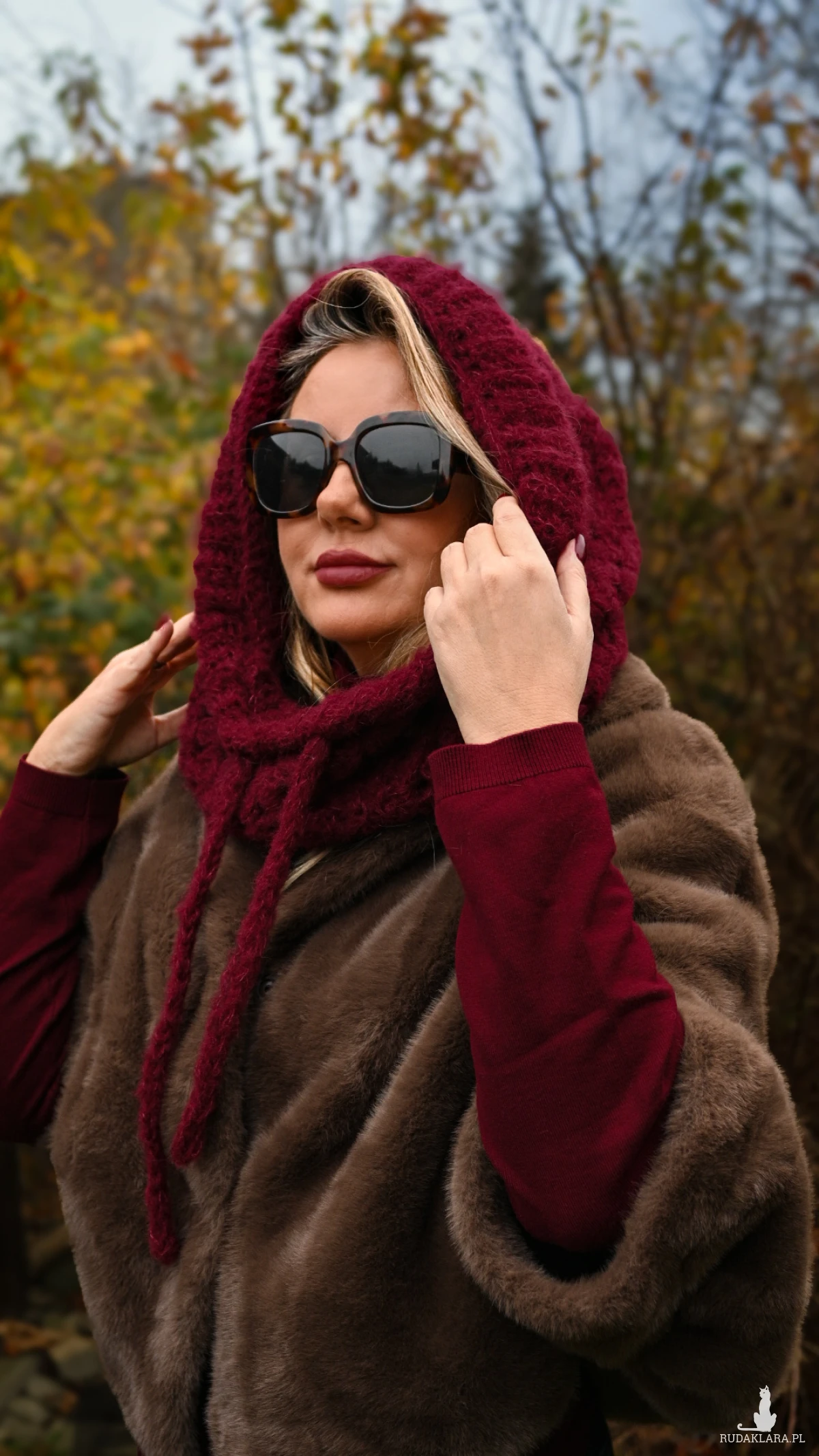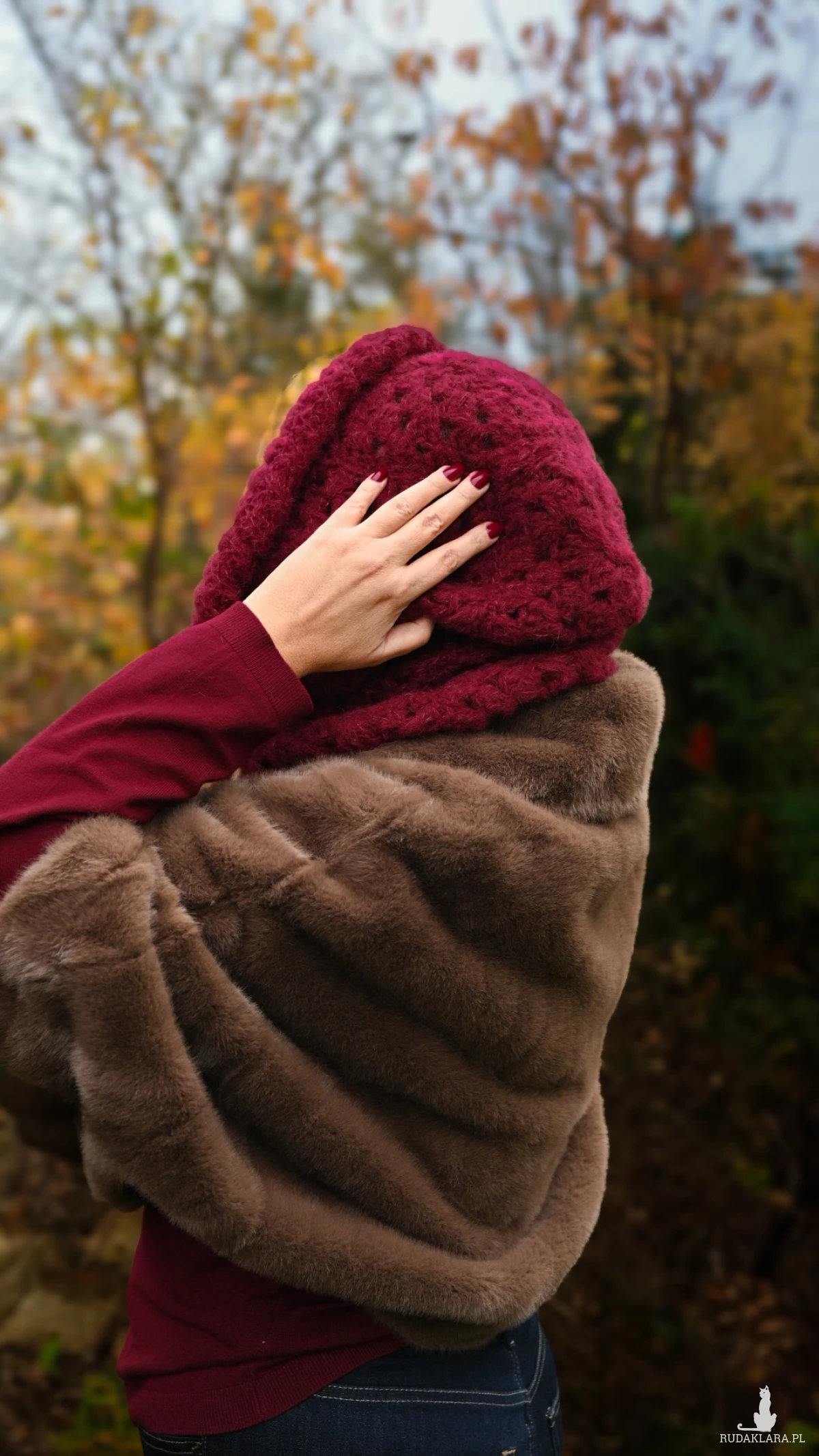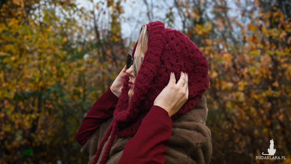 rzedstawiamy unikalną, ręcznie szydełkowaną balaclavę w głębokim, eleganckim kolorze bordo – idealną na zimowe dni, by dodać stylu i zapewnić ciepło.