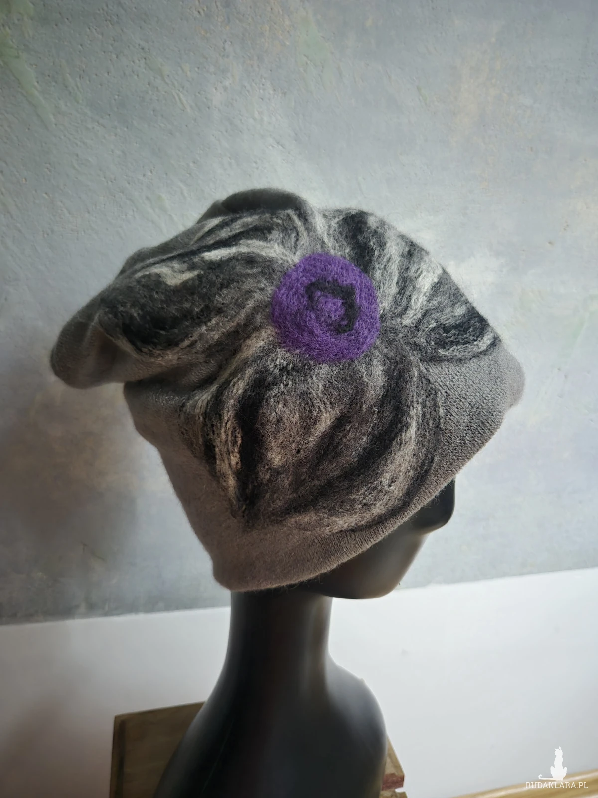 czapka wełniana filcowana zimowa szara ostatnia, handmade w kwiaty na podszewce-- rozmiar uniwersalny, wełniana, filcowana wełną merynosów, bardzo ciepła, fantastyczna, miła, miękko układa się na głowie, niesamowicie zwraca uwagę, doskonałą na codzienne noszenie jak i na prezent, zawsze możesz ją założyć po basenie i przeżyjesz,box waliz