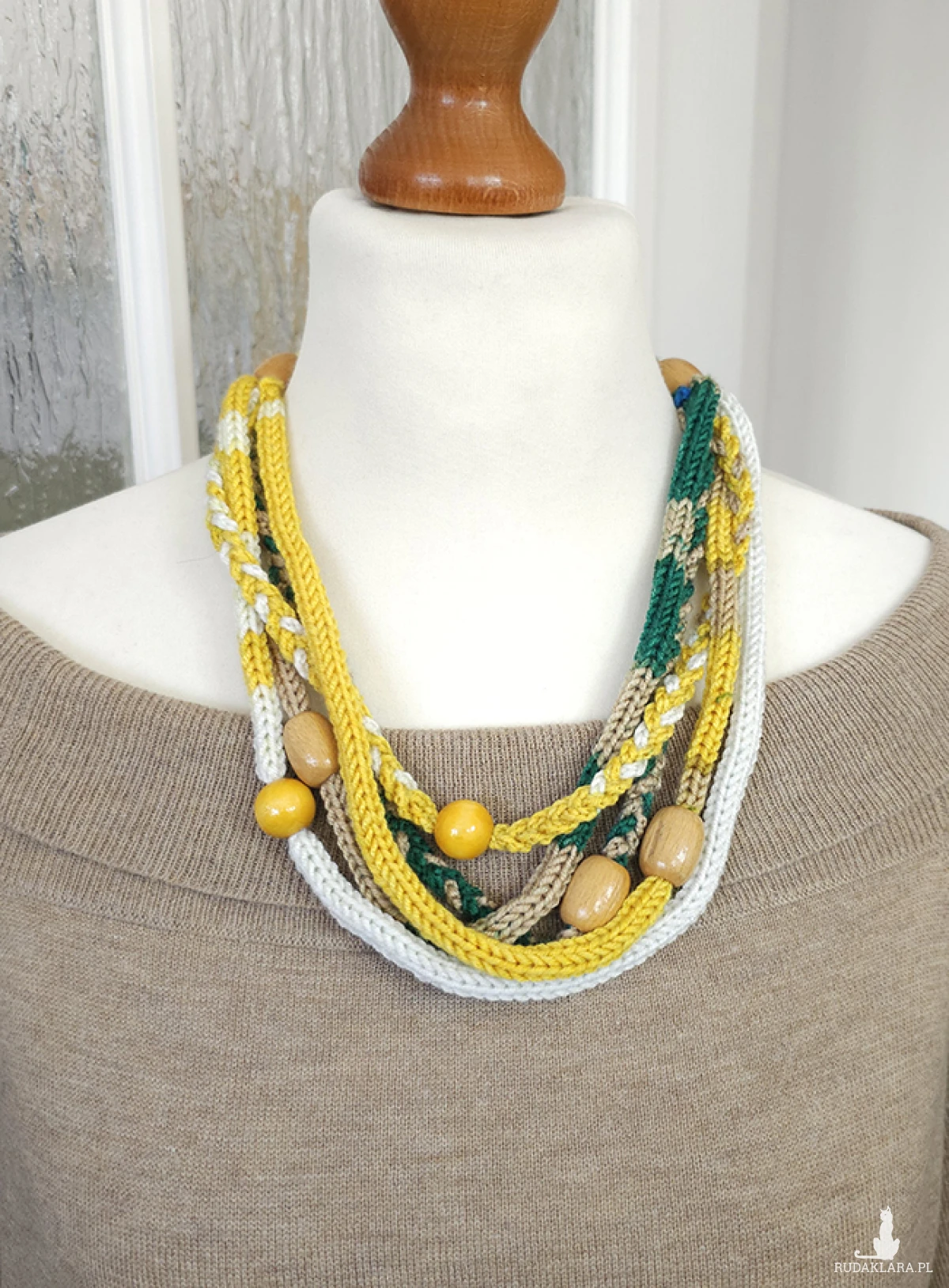 5845 Wyraź siebie kolorem! Jasny, lekki naszyjnik z włóczki.