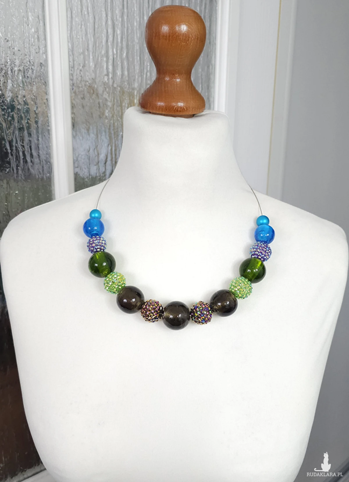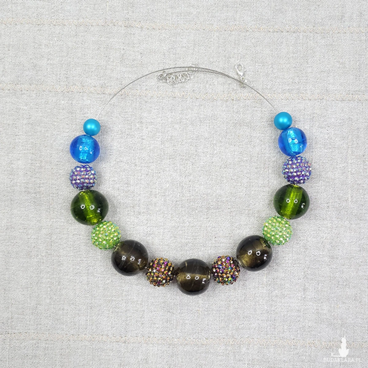 6326 Bądź w centrum uwagi! brązowy, zielony, niebieski naszyjnik; korale; szkło weneckie