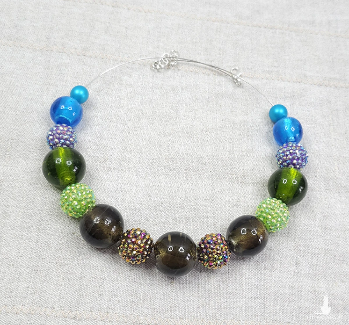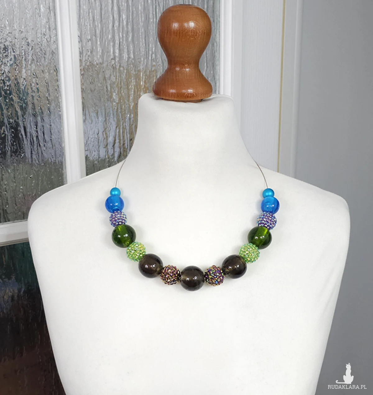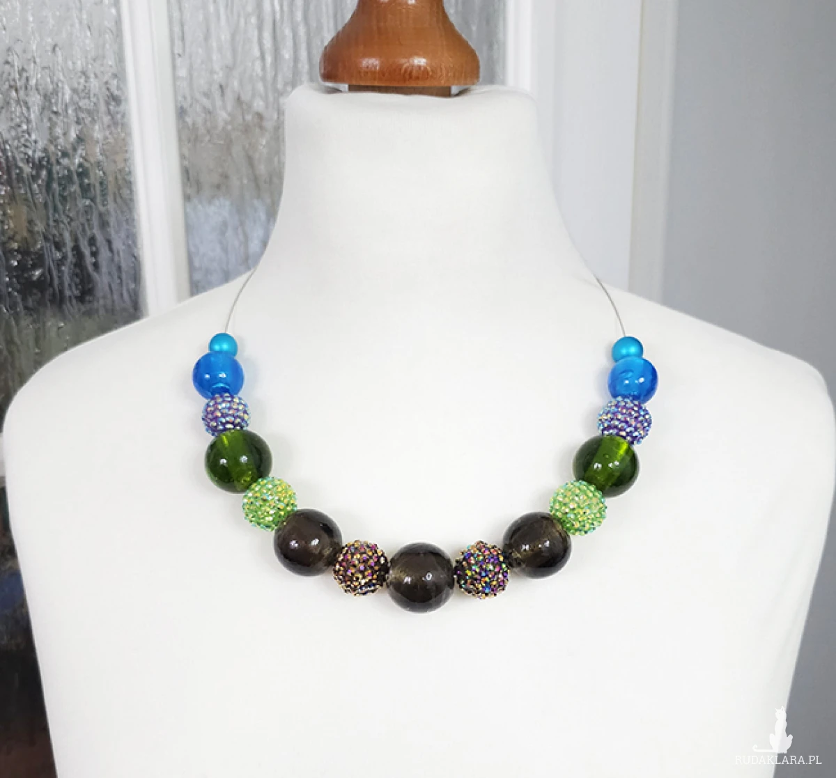 Odkryj nasz unikatowy naszyjnik, który przyciąga spojrzenia! Połączenie koralików z akrylu, szkła i szkła weneckiego